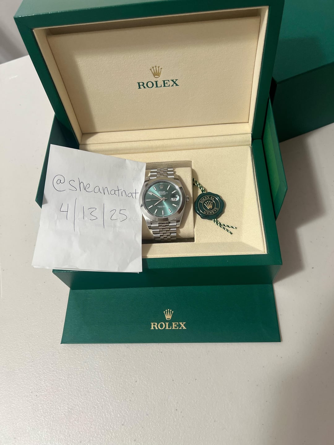 [WTS] BRAND NEW 2025 Rolex Datejust 41 Mint Green Smooth Bezel Jubilee Watch 126300 Box Papers Card Tags $12,000