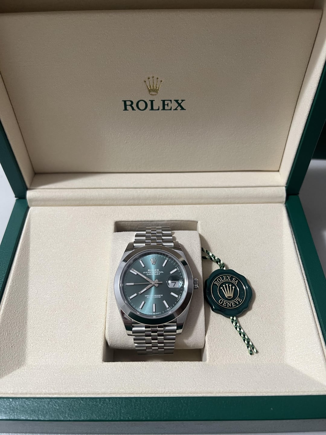 ![[WTS] BRAND NEW 2025 Rolex Datejust 41 Mint Green Smooth Bezel Jubilee Watch 126300 Box Papers Card Tags $12,000 5](https://cdn-cf.watchpatrol.net/600x600/img/full/777e7cfc4908f6c8f3b2f33e4f1a587731959128.jpg)