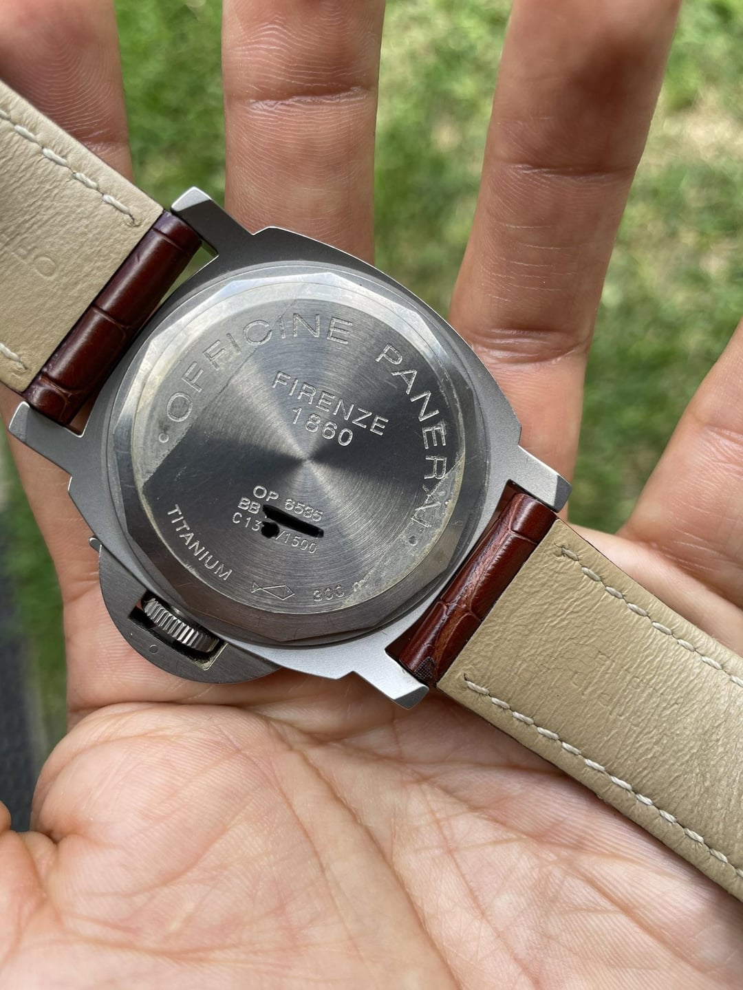 [WTS] Panerai Luminor TITANIUM model/Tabacco Dial Up forsale is The Limited Edition Panerai Luminor TITANIUM. In fantastic, all original condition. (Case back still retains plastic sticker/film) Limited to only 1500 pieces in this configuration. Ref: PAM00055 (Firenze 1860) OP 6535 Case size: 44mm Case Material: TITANIUM Crystal: Sapphire Crystal Dial: Tabacco Contents: watch only - w/original rubber case protector/guard Movement: manual winding OP Power reserve : 56hrs Strap: Original alligator strap Water resistance: 300meters Welcome to meet in person or FaceTime call. Located in central Houston TX USA Asking Price : $3,450
