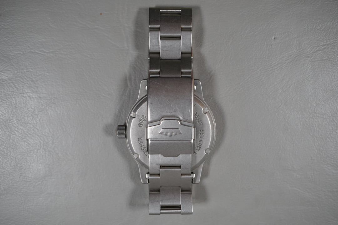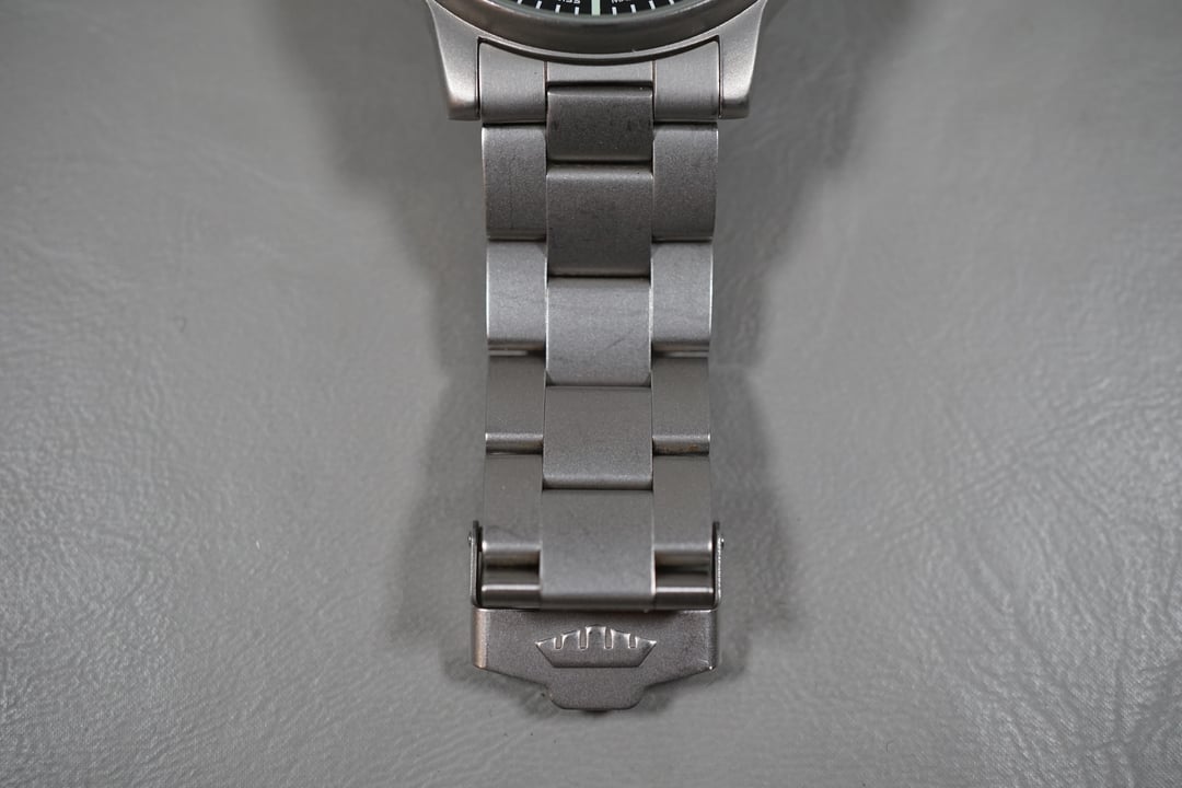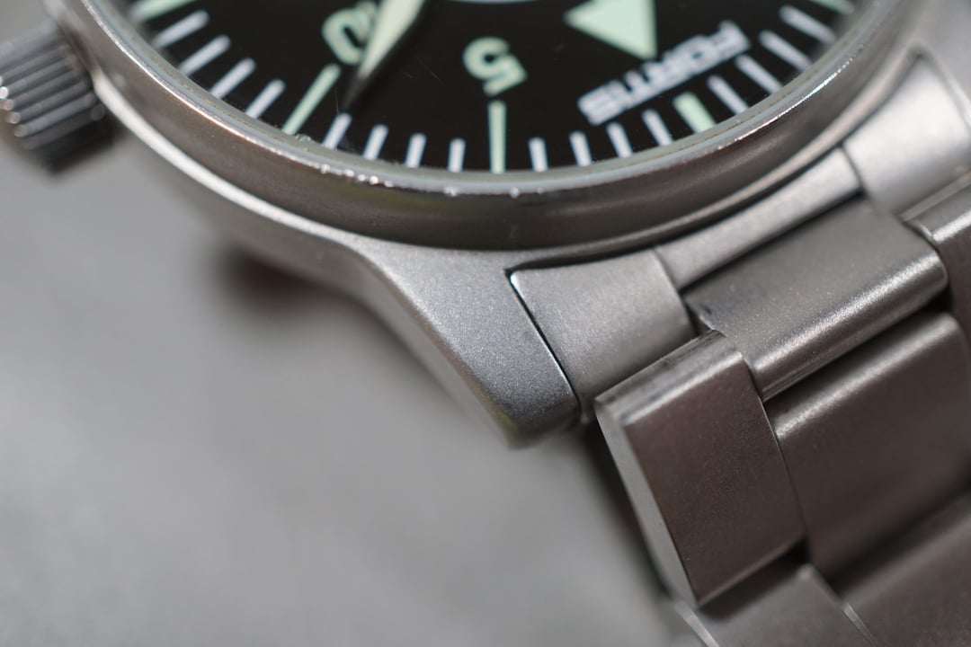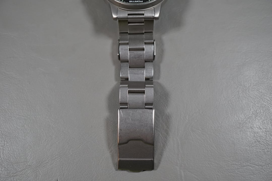 Timestamp: https://imgur.com/a/xl6L7zn For sale is a Fortis Flieger 595.10.46 Cockpit Black Dial Automatic Pilots Watch Movement: Mechanical (Automatic) Condition: Used Strap: Original bracelet sized to approximately 18cm with 3 extra links Box: None Warranty card: None Manual: None A rare find, first generation Fortis Flieger with the small unsigned crown, on the original bracelet with hollow endlinks and divers extension clasp. Tritium dial and hands, the cracking on the hour hand adds to the character of this example. There is wear present on the crystal edges and surface. Approximate measurements: Case diameter: 40mm (excluding crown) Lug width: 20mm Lug to lug: 47mm Thickness: 11mm Asking $610 USD including tracked shipping to US. UPS Expedited/Express, Canadian, and global shipping available at an additional cost. Payment via Wise, crypto, wire, e-Transfer (for Canadians), or PayPal Invoice (+3.9%). No trades and please comment before messaging.