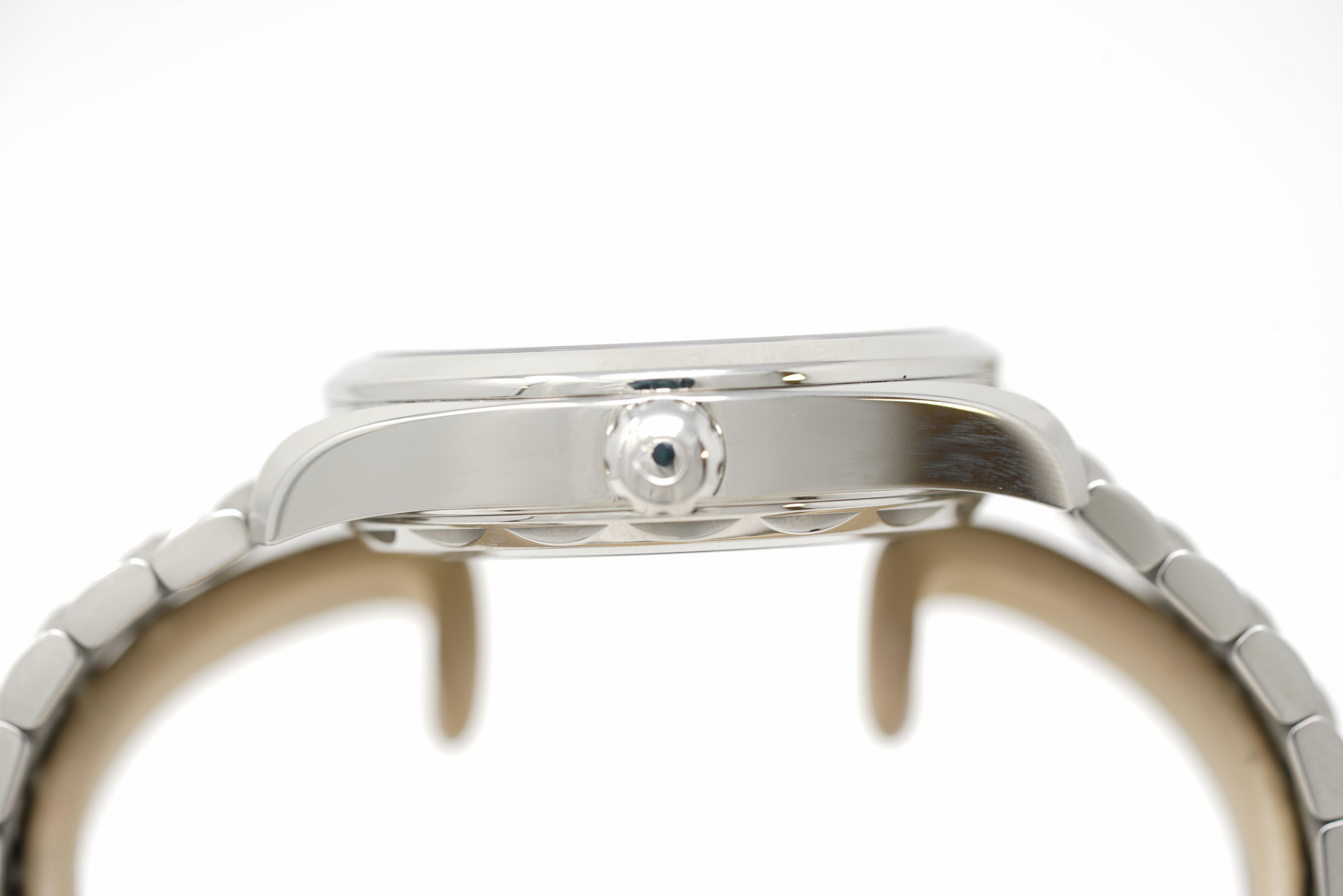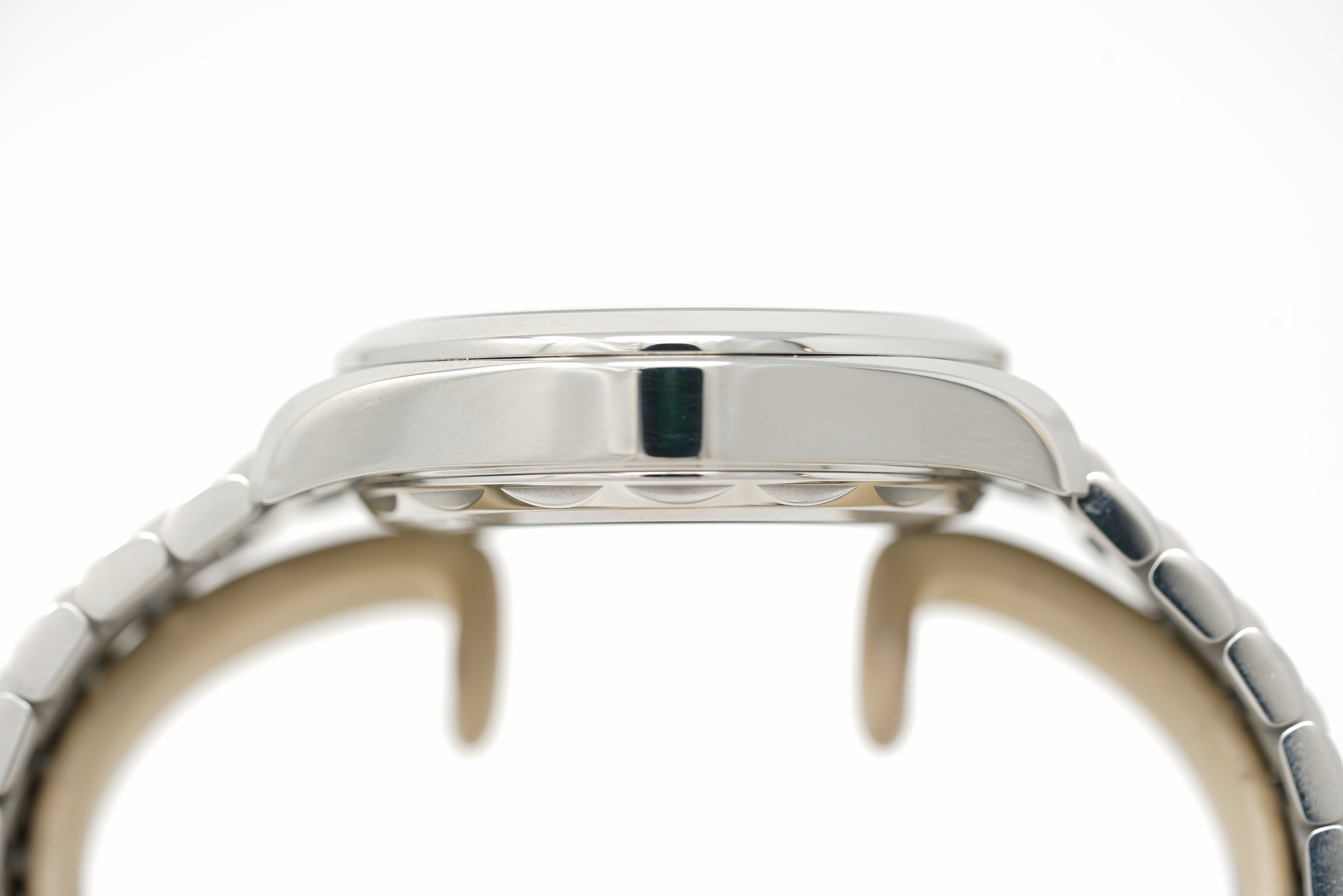 This pre-owned watch is in 87% condition due to slight marks on the lugs, bezel, and throughout the case. The bracelet is in 82% condition due to marks on the links and clasp. Originally purchased in October 2024, this watch comes with its inner and outer box, instruction manual, warranty card, pictogram card, master chronometer card, hangtag, and the one-year Topper Pre-Owned Select warranty.