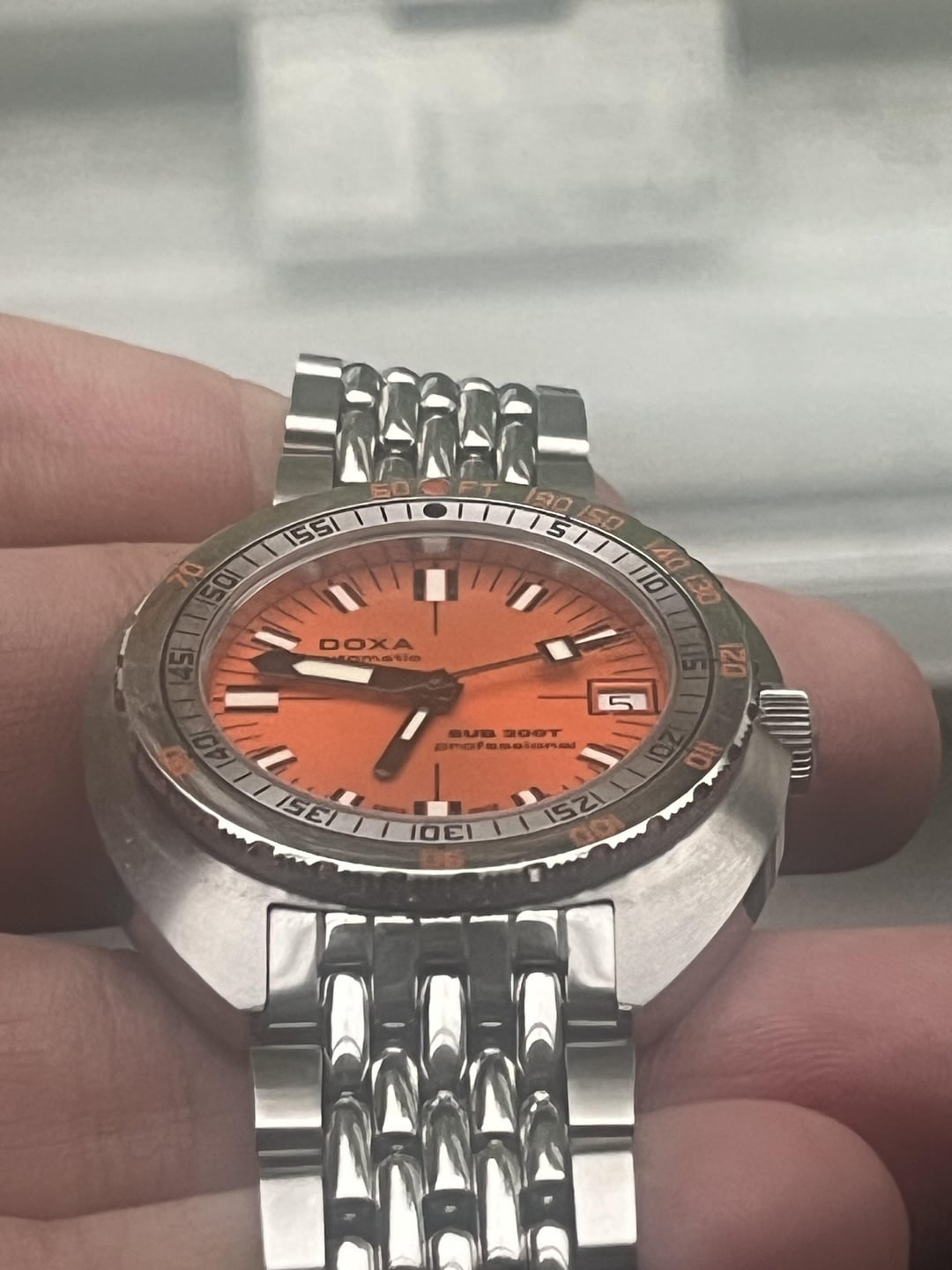 For sale: Doxa Sub200T Professional Sunray Comes with bracelet,all links. Full box and cards included. Watch runs well, very light wear if any. Seeking $1100 shipped, negotiable pending shipping options