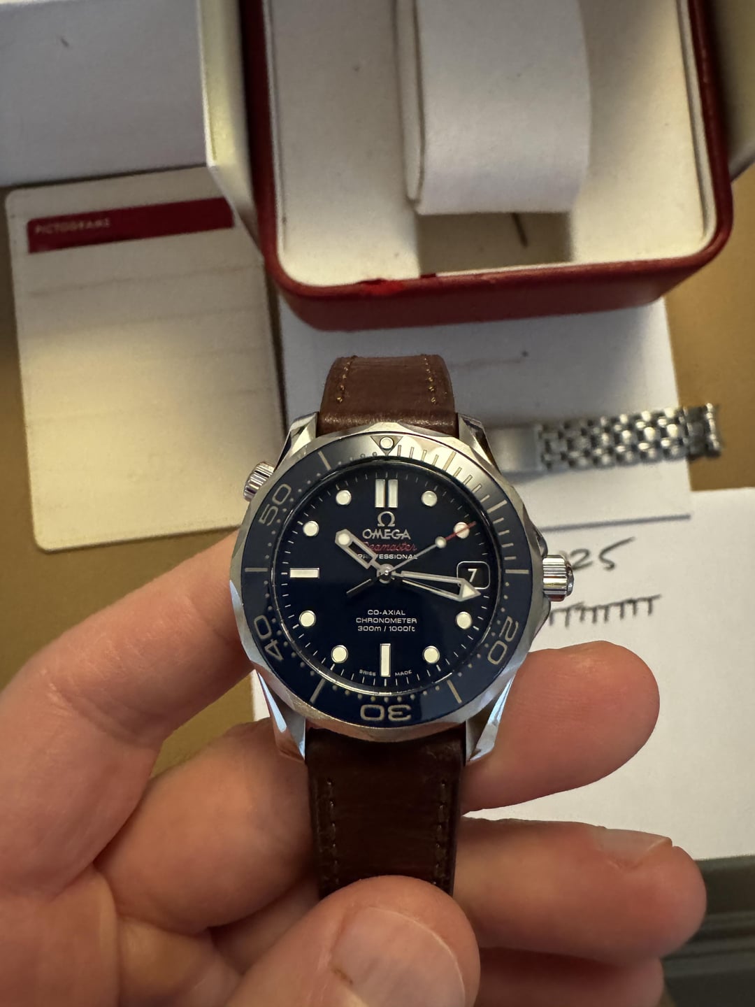 Hey All, Selling my 36.25mm Omega Seamaster 212.30.36.20.03.001. Has a ceramic bezel insert and the co-axial movement. Excellent little watch that makes for a great luxury beater with fantastic wrist presence. In great condition with a few light marks on the outer bezel, lugs and case (represented in pics) and a very slight mark on the AR coating (crystal is fine). Comes with pictogram card, original box, bracelet and extra strap. Keeping excellent time on timegrapher. $2,700 via Zelle or PayPal. No trades. Will ship CONUS - FedEx. [Timestamp](https://imgur.com/a/32Ti8ZF) [Video](https://imgur.com/a/qNgmW4M) Edit: Added Ref