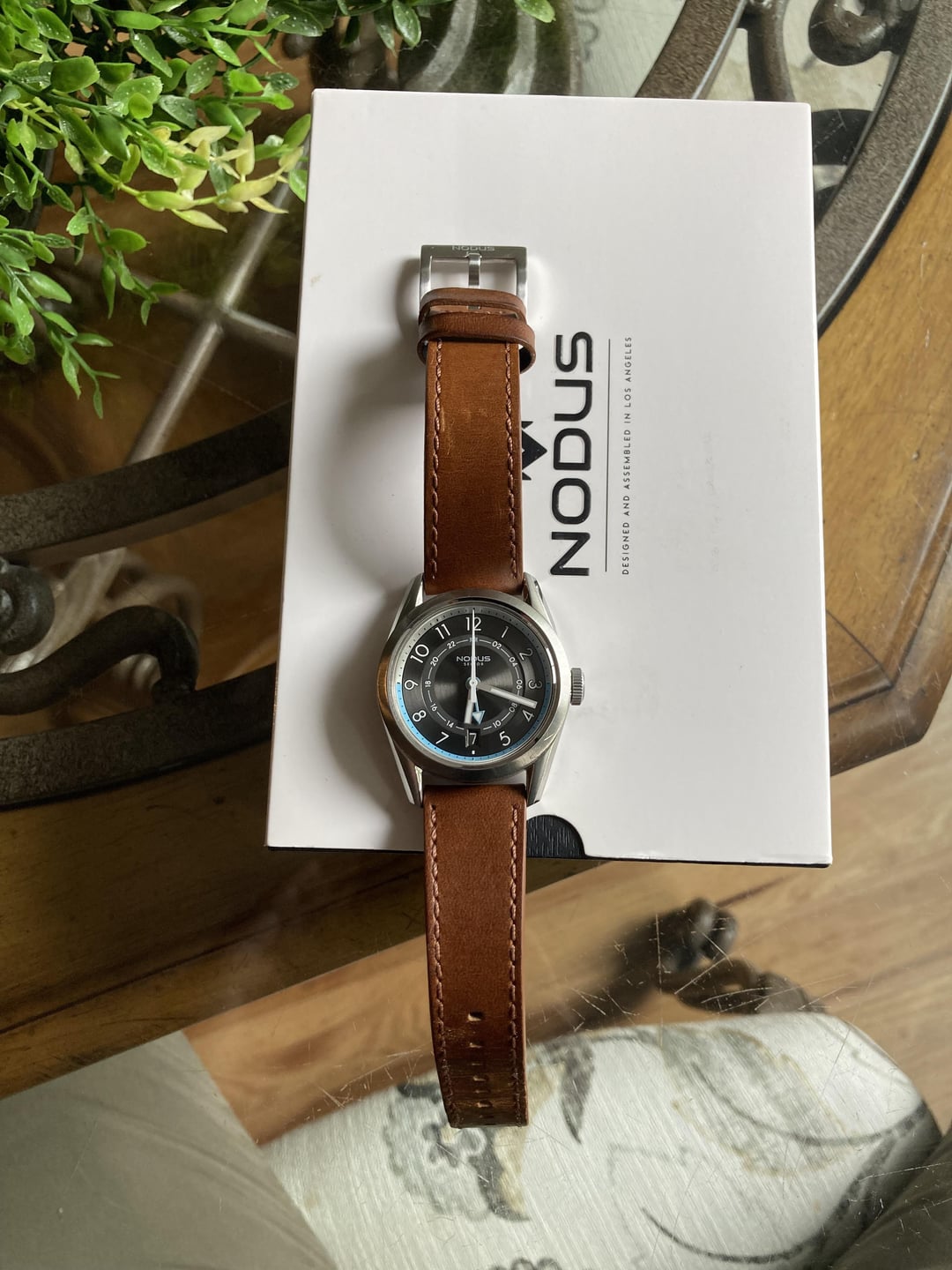Up for sale is my Nodus Sector GMT, sadly I am having to get rid of it due to being gifted another GMT for my birthday. I only allow myself to have one GMT at a time lol. I have had the watch for a month and loved it the few times I have worn it. So what comes with the watch is all shown in the pics above. The watch is still under warranty until August this year. If you have any questions shoot me over a pm, thanks Comes on a Nodus tan leather strap, along with a Nodus Bracelet with extra links CASE 316L surgical-grade stainless steel 38mm width x 11.9mm thickness x 47mm lug-to-lug x 20mm lug width CROWN Screw-down crown GLASS Flat-top sapphire crystal with domed underside Blue anti-reflective coating on underside BEZEL Fixed bezel with sunray brushing LUME Swiss Super-LumiNova® BGW9 Grade A WATER RESISTANCE 100 meters MOVEMENT CALIBER: TMI NH34 (GMT) ORIGIN: Japan JEWELS: 24 POWER RESERVE: 41 hours ANTIMAGNETIC: ≧ 4800 A / m ACCURACY: +/- 10 seconds per day (regulated by Nodus) Price: $375 (slightly negotiable) shipped USPS in CONUS PayPal F&F, +3% G&S or Venmo