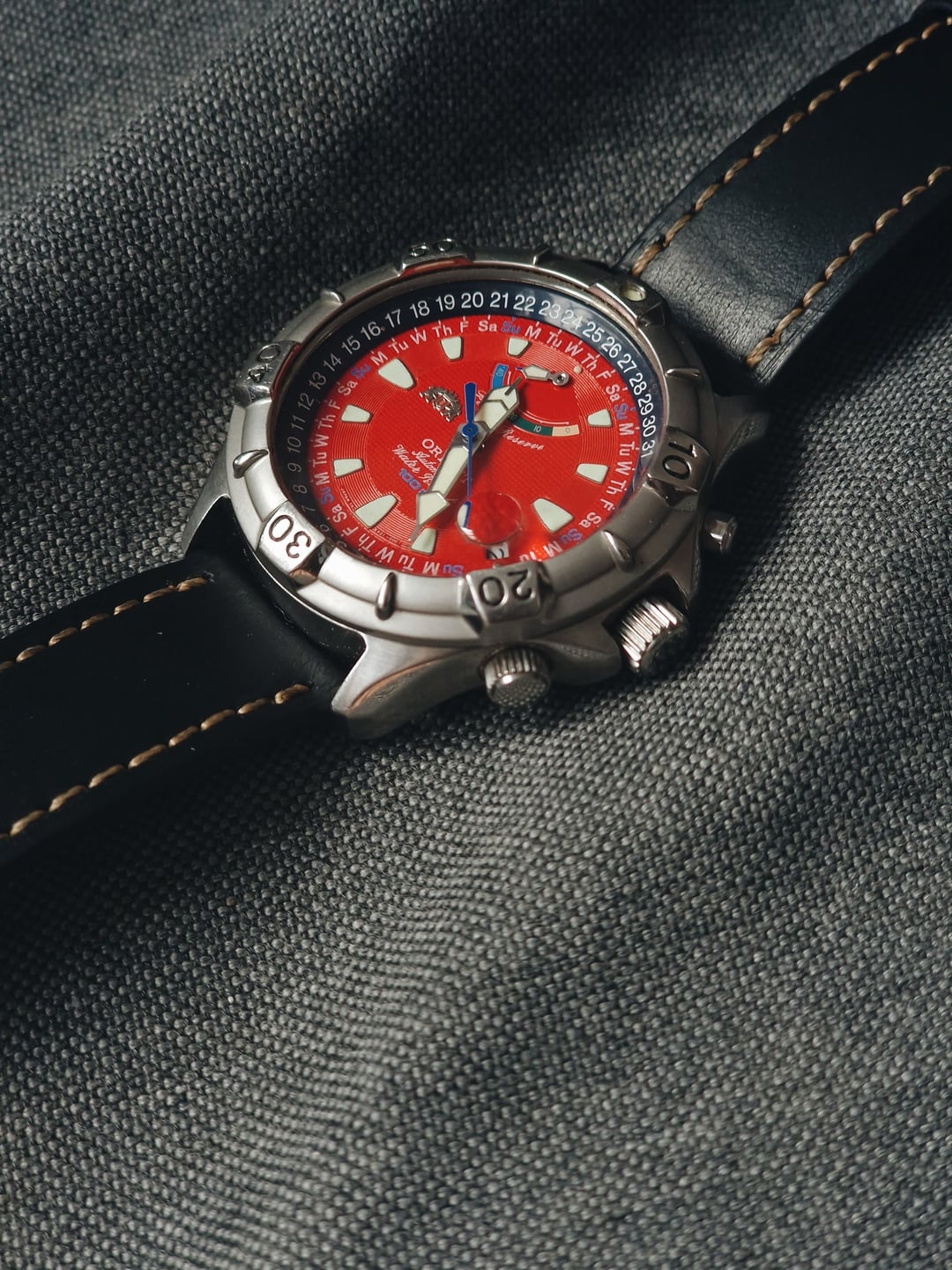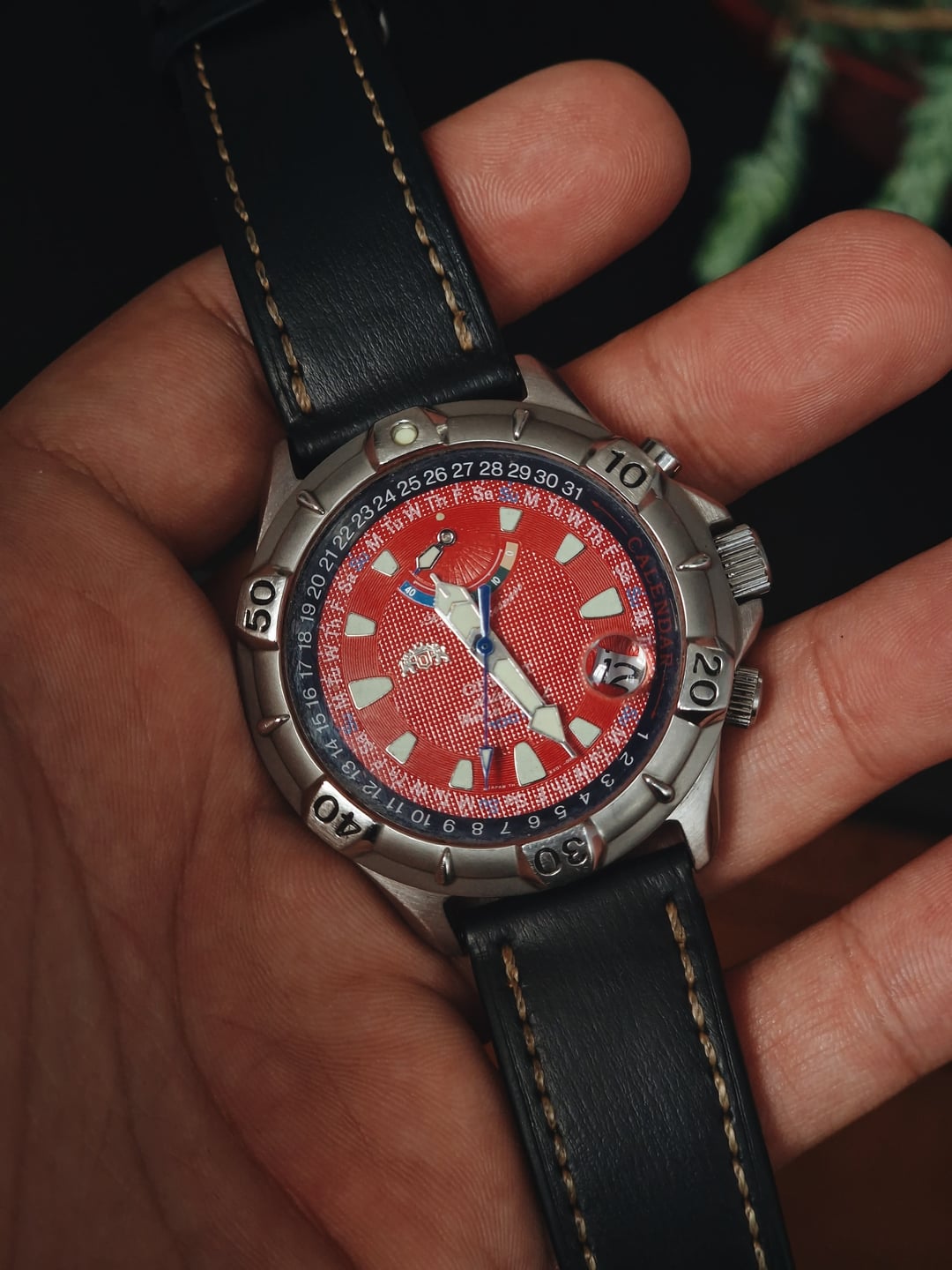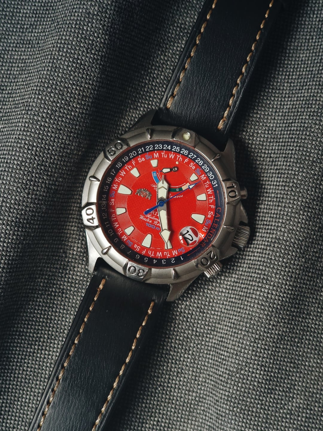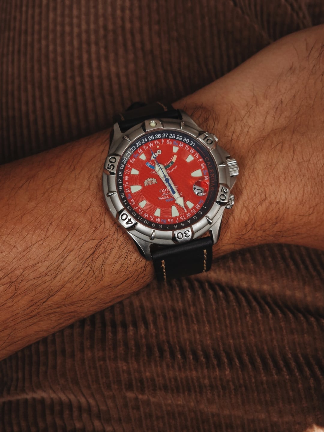 A bold and quirky piece from Orient – an automatic multi-year calendar that blends tool watch ruggedness with retro charm. It features a vivid red textured dial, inner rotating calendar right, and 100m of water resistance. Both functional and fun, don’t you agree? Not to mention how it’s a quite rare model, perfect for fans of unique JDM watches, neo-vintage divers, or anyone looking to add a real conversation piece to their rotation. **Condition:** Very good. The case has some usage marks. Please see the pictures for a better description. **Case Size:** 40.4 x 46mm stainless steel case with a thickness of 14mm and a lug width of 20mm. **Crystal:** Mineral **Movement:** Orient Cal. 46G41, automatic with 21 jewels, 21,600 bph, and a power reserve of 42 hours. I don’t know its service history, but everything is working as it should. Quickset date pusher at 2 o’clock. **Price:** Asking $250. Please add $20 for worldwide shipping. Payment methods include Wise, ACH transfer, Revolut, Bitcoin (On-Chain or Lightning), or PayPal G&S for buyers with solid references. Add +6% for currency conversion fees on the latter. I’m located in Portugal, but worldwide shipping isn’t an issue. Established seller with over 220 transactions – buy with confidence! Make sure to follow me on Instagram (@daily.worn) to check out the newest additions. [Pictures](https://imgur.com/a/GFHI1en) [Timestamp](https://imgur.com/a/yO7bmSD)