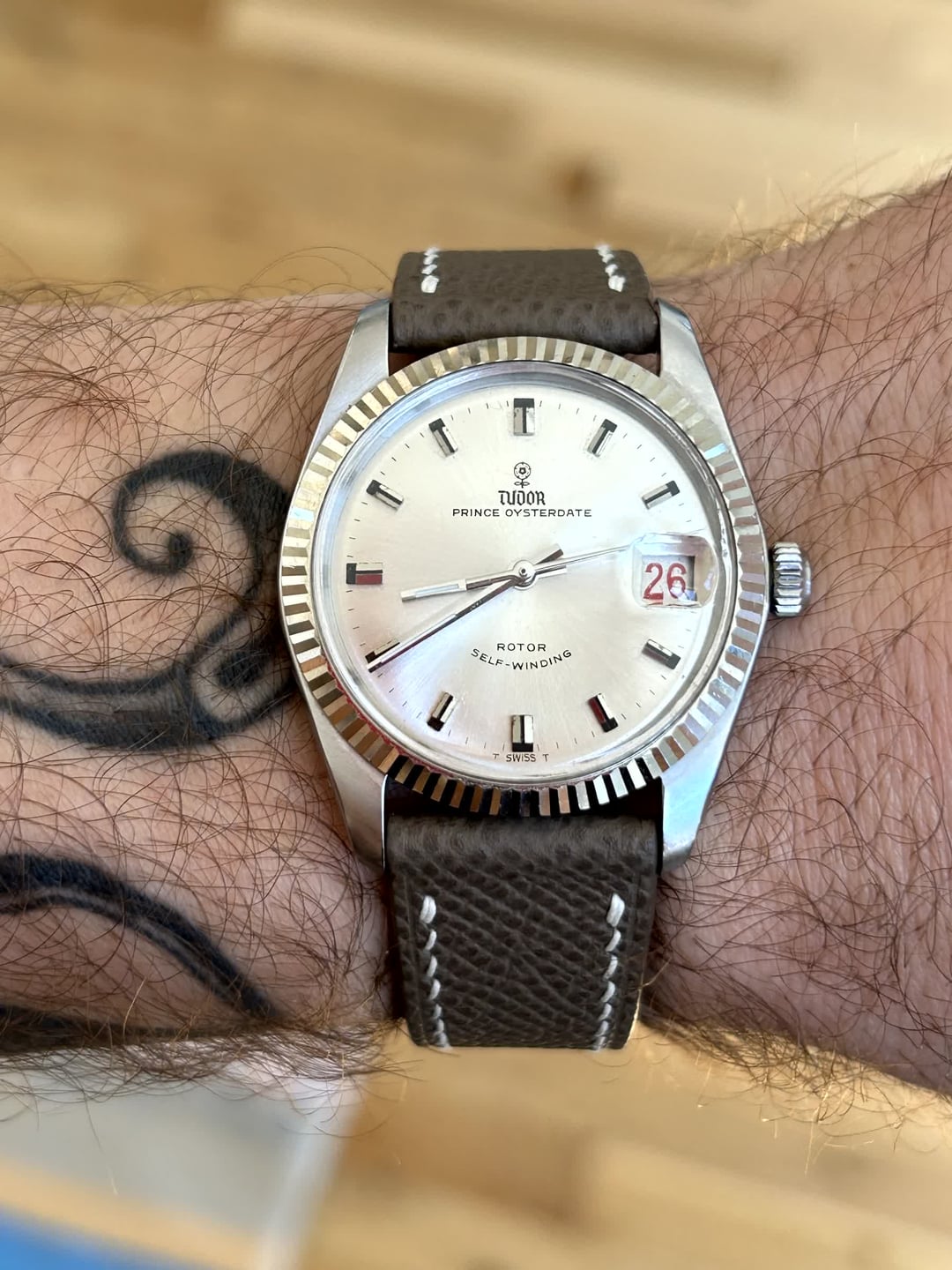 Hi WatchEx, Selling a stunning Tudor prince oysterdate small rose from circa 1968 with roulette date wheel. The automatic 25 Jewel, Caliber 2484 movement that has recently been serviced and keeps great time. **Condition:** Excellent vintage condition, looks barely worn. Case is sharp with minimal hairlines, dial is in close to pristine condition (minimal patina can only be noted in direct sunlight - see pictures). Hands have been replaced but the originals can be included at the request of the buyer. Comes on a new taupe epsom leather strap from the strap tailor (\~$150 value)! **Specifications:** * Automatic 25 Jewel, Caliber 2484 movement * Diameter (excluding crown): 34mm * Lug width: 19mm * Case: screwback oyster case in great shape * Bezel: fluted white gold, similar to the bigger brother Rolex datejust * Date: no separate position but can be set quickly by alternating between 9-12; beautiful red and black roulette date wheel **Price:** Priced to fly at $1650 shipped CONUS! **Payment:** Paypal F&F and Venmo accepted. Paypal G&S at buyers expense and only if good references/well-known in the community. Based in NYC and open to F2F deals. P.S. PM only, no trades atm please