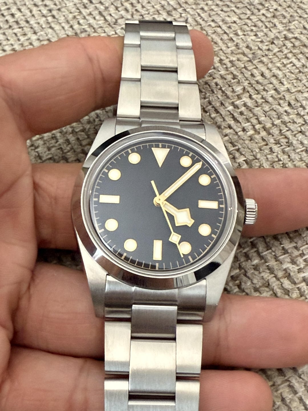 Up for sale is a gently used SAN MARTIN BB36 with sterile black dial. There are hairline wear marks on case and bracelet but overall good used condition. Comes with full kit and additional links Quick Specs: MSRP: $250 plus tax and duties Ref #: SN021 Case Material : Stainless steel Diameter : 37mm Lug to lug: 45.9mm Thickness: 11.3 Glass: Sapphire crystal Dial: Black sterile with gilt snowflake hands Movement : PT5000 References: please check out my feedback https://watchcharts.com/repcheck/watchuseek/anand.shah1991/feedback AND https://watchcharts.com/repcheck/reddit/anandshah1991/feedback I’m asking $125 shipped which is more than 50% off retail for the combo. Price includes shipping from NJ (within CONUS, fully insured), international shipping available at buyer’s expense. Zelle preferred, wise, venmo, PP also accepted No trades at this time I am very. Comfortable with FaceTime and in person meet up