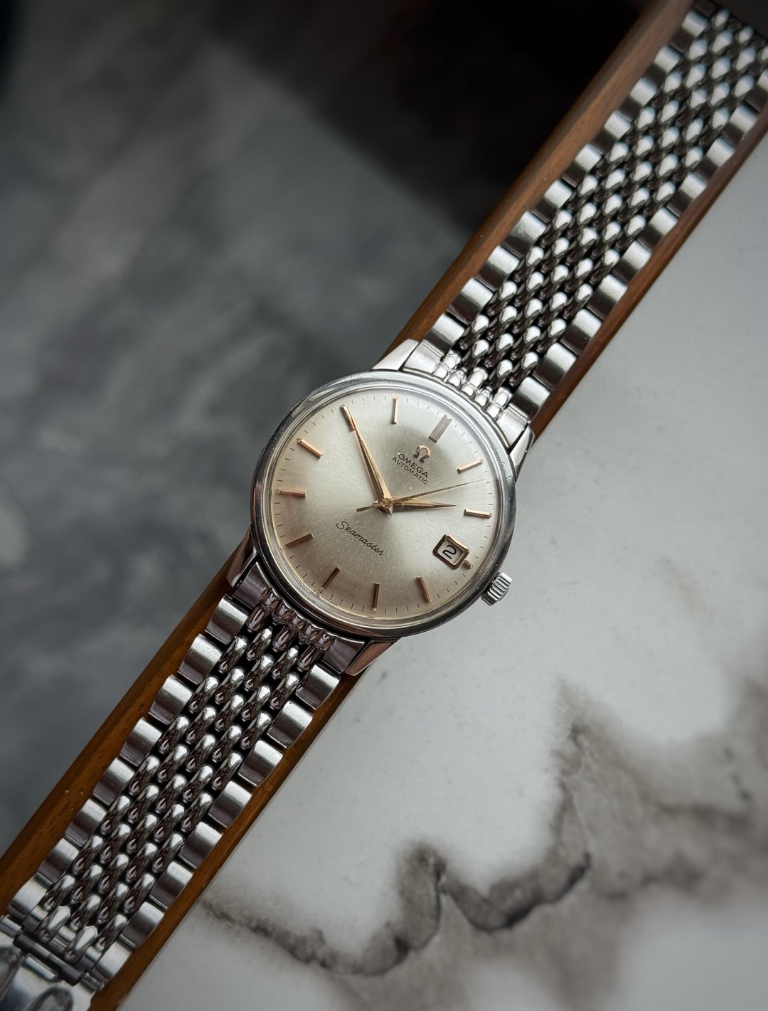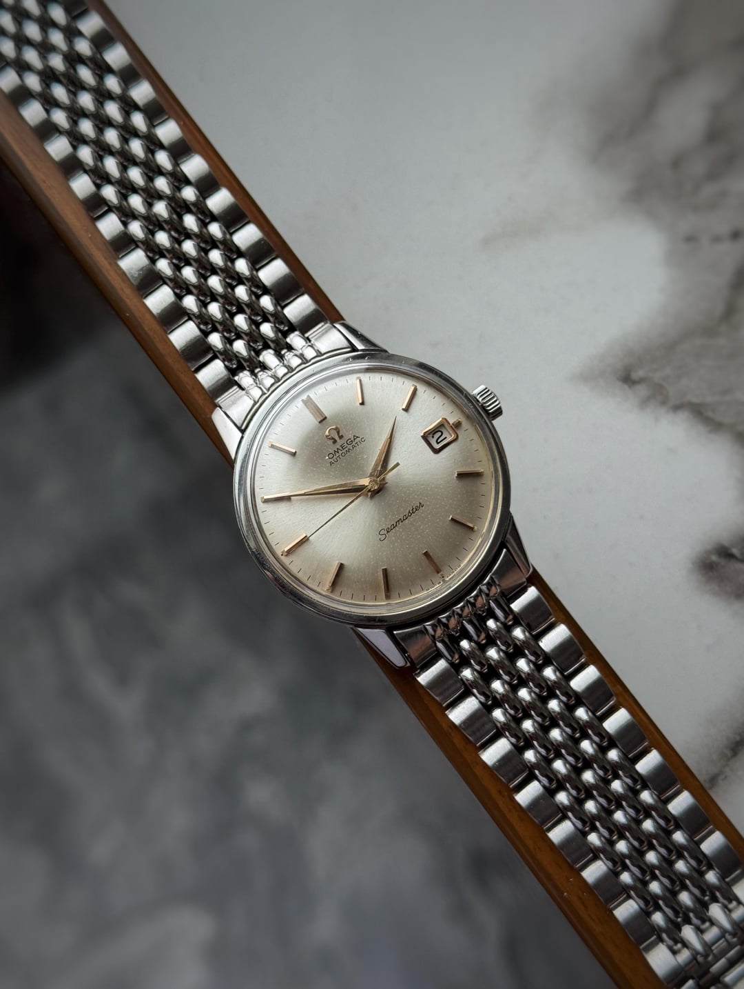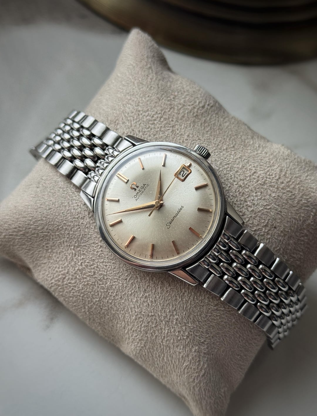 [WTS] Omega Seamaster Rose Gold Hands/Indices 166.002 with BOR bracelet (Serviced) only for 750$ Shipped 🚢 Via FedEx Up for sale is a omega seamaster reference 166.002 from 1963 featuring a stainless steel case with a case size of 34mm. Condition of the case is good no major dents or dings just a few hairline scratches overall. Dial is in good condition with signs of aging throughout displaying beautiful rose gold markers and hands. Omega signed crystal, crown and clasp. Comes on its original Beads of Rice omega bracelet which will fit upto 7.5 inch wrist. Automatic movement calibre 562 working perfectly fine with no malfunctions and keeping accurate time sicne its recently serviced. Watch only! Asking 750$ 🚢 via Fedex Payment through Wise/Crypto/PayPal F&F only
