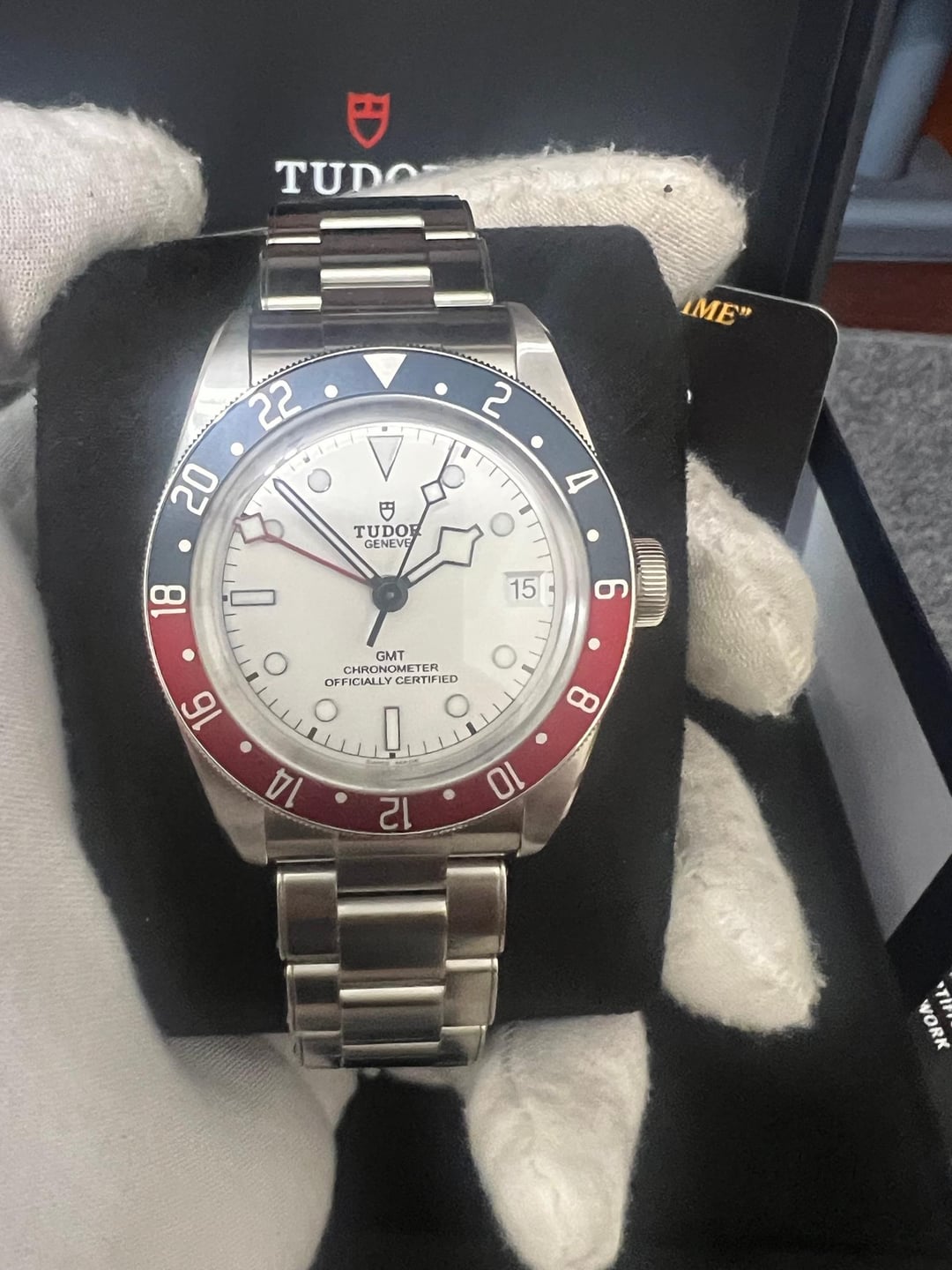 ![Thumbnail [WTS] New 5/25 Tudor Black Bay GMT Pepsi White Dial Opaline Ref# 79830RB $3,499.00 4](https://cdn-cf.watchpatrol.net/120x120/img/full/f8d4b6237696b38709fe4b42aab8efe3d1f8af0a.jpg)