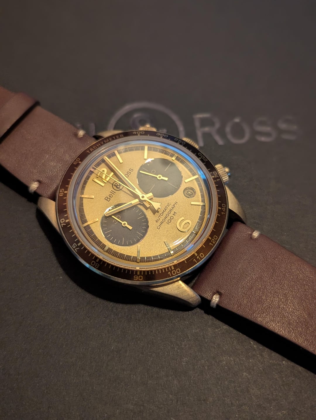 \*\*\*Only 100 made and this is #26:100 REDUCED $2150 No trades. You will not find it cheaper. Strap is unworn and the clasp has zero marks. Serviced in December 2024 and running impeccable. Overall condition is very clean with minimal wear. Case size: 41 MM Case material: Bronze Movement: Sellita SW 300 two-counter automatic chronograph Bracelet: Leather - Brown (Adjustable) Dial type: Champagne Baton Water resistance: 100 metres timestamp: [https://imgur.com/a/yyoxqBP](https://imgur.com/a/yyoxqBP) Great owner review: [https://revolutionwatch.com/an-owners-perspective-the-bell-ross-x-the-rake-revolution-el-mirage/](https://revolutionwatch.com/an-owners-perspective-the-bell-ross-x-the-rake-revolution-el-mirage/) Payment via PPFF or Venmo. Will take PPGS if you include a 3% fee. Shipped in CONUS from Austin, TX.