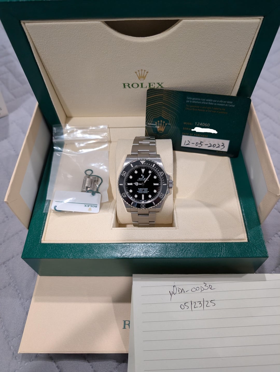 Selling my Sub no date, bought Dec'24 as new stock from a NYC dealer. Comes with: - Watch - Box - Warranty Card - Tag Price: $11,500 Payment: Wire Shipping: CONUS via Fedex Insured or NYC pickup