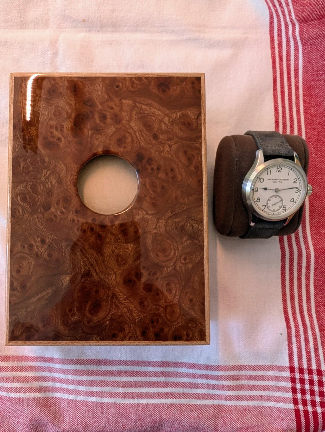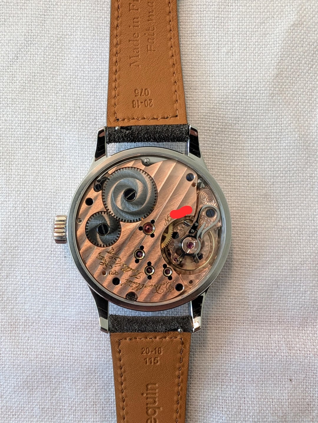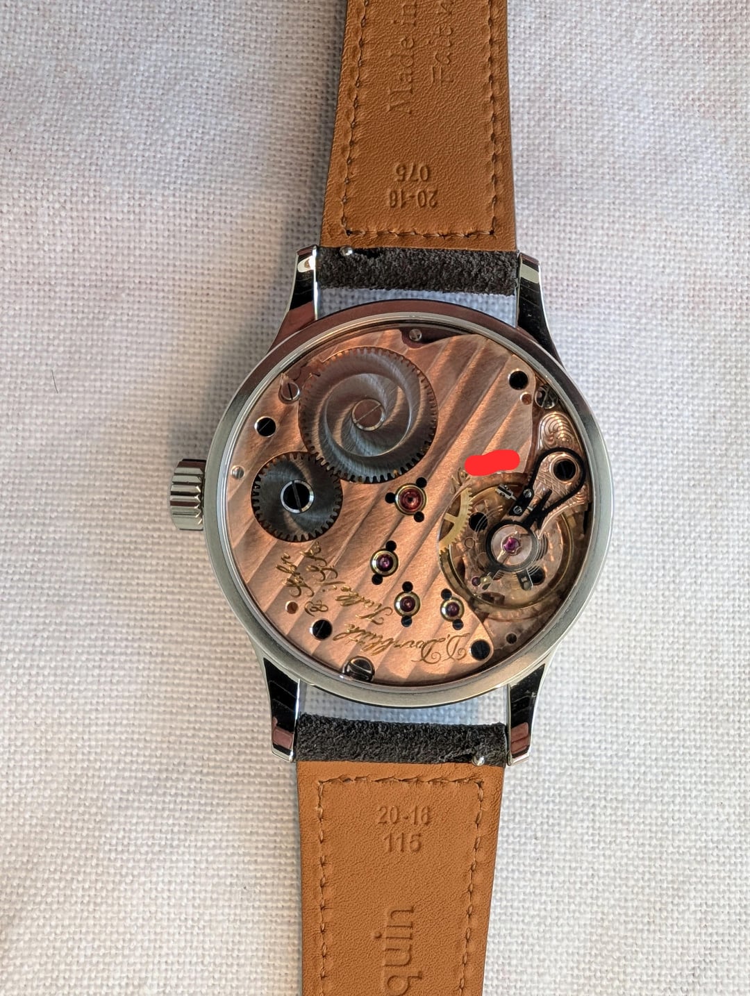 For sale is my Dornblüth & Sohn Calibre 99.1-M - brand new with 2025 papers (two year manufacturer warranty). Other than putting it on a suede strap, it has never been worn and is brand new with box and papers. **Price: $7499** including insured U.S. (via USPS) or EU (via DHL) shipping. I am in the U.S. military but stationed in Europe, so I can ship within the U.S. or EU with no duties/import fees. I waited over a year for this, and literally the week I received it, I got "the call" from my AD, and I need to sell to free up funds. Otherwise this would not be leaving my collection. Dornblueth Calibre 99.1-M manual winding watch - 40 mm • Watch diameter (mm): 40.0 • Watch height (mm): 10.0 • Lug to lug (mm): 49.5 • Case finish: Mixed • Case metal: Stainless steel • Case back: Transparent Dial color: Silver/White • Front crystal: Sapphire • Movement: Manual mechanical Photos: [https://imgur.com/a/qlEe5OI](https://imgur.com/a/qlEe5OI) Timestamp: [https://imgur.com/a/gSnz89O](https://imgur.com/a/gSnz89O) Dornblueth watches are made according to Dirk's time, one by one. The total production is often just eight pieces in one month, sometimes a bit more, sometimes a bit less. Dirk cuts the metal, designs the movements, and creates virtually every piece of the watch himself, in his small workshop converted from a garage. Each watch takes time, a lot of time, and for this reason, no two watches are exactly the same. The Dornblueth & Sohn Calibre 99.1-M (Medium) is a modification of Dirk's Calibre 99.1.  It features the same design, but packed into an very wearable 40 mm case. Everything is here - 3/4 plate, beveled edges, screw balance wheel, swan neck regulation, engraved balance cock, screwed gold chatons, and blued screws (by flame of course, including the slots). And now the extras. The name "D. Dornblueth & Sohn, Kalbe i./S.A." is hand engraved and not machine engraved, a virtually rarity on any watch. And all of the decoration (Cotes de Geneve and the sunray finish on the crown wheel and ratchet) are all done in-house, by hand.  You'll notice that the movement is rose gold in appearance - this process itself is elaborate. After cutting and polishing the plate, Dirk treats the surface to turn the metal a copper color. After all of the drilling and milling operations are complete, the movement itself is treated with rose gold to enhance the deep color. The dial is coated in silver, and is matte finished with black hand painted Arabic numerals and "railroad track" markings around both the dial and subdial. Blued steel hands. Thanks for looking, and please reach out with any questions! (Edited to add links to photos and timestamp.)