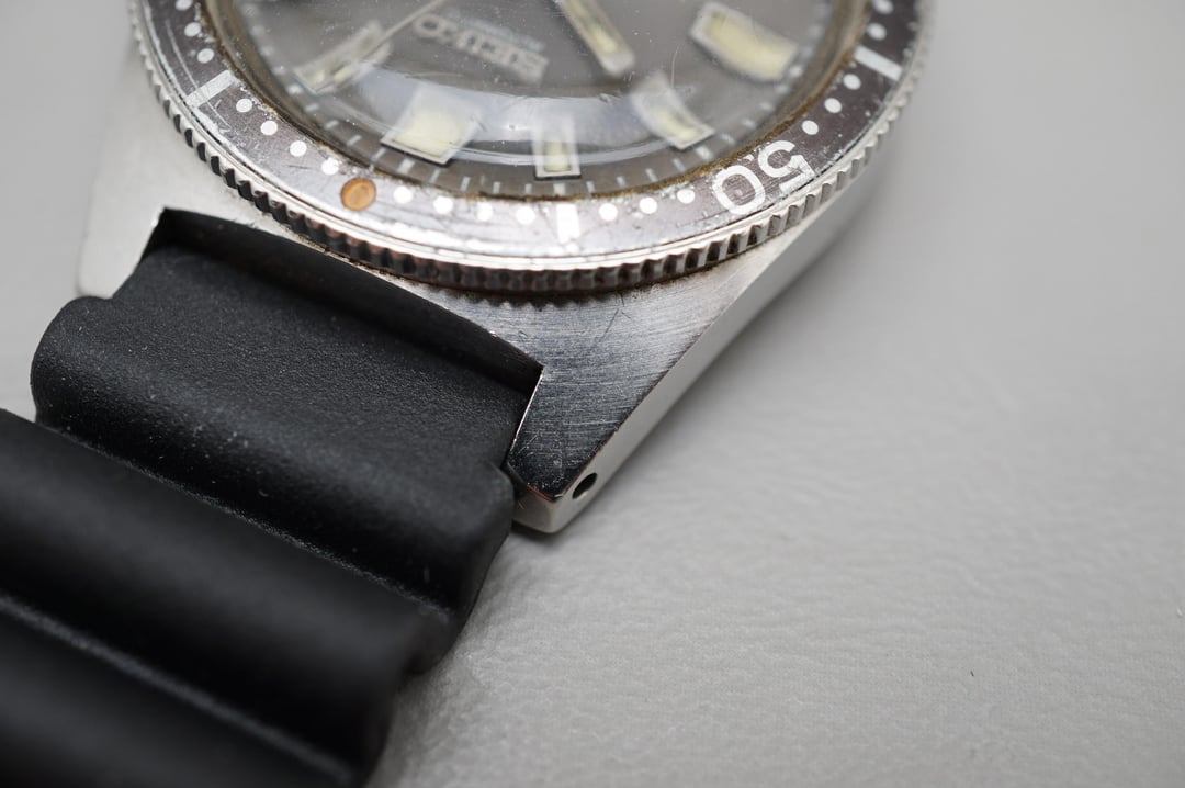 Timestamp: https://imgur.com/a/xxayuZI For sale is a Seiko 6217-8001 62Mas Big Crown Horseshoe Back Automatic Watch First Diver Original Movement: Mechanical (Automatic) Condition: Used Strap: New Seiko DAL2BP Rubber Box: None Warranty card: None Manual: None Big crown 62MAS, with the horseshoe style caseback. Original condition, service history unknown, seconds hand lume missing and bezel is stuck. Serial dates production to June 1967, nice worn vintage condition. Approximate measurements: Case diameter: 38mm (excluding crown) Lug width: 19mm Lug to lug: 46.5mm Thickness: 14mm Asking $2650 USD including tracked shipping to US. UPS Expedited/Express, Canadian, and global shipping available at an additional cost. Payment via Wise, crypto, wire, e-Transfer (for Canadians), or PayPal Invoice (+3.9%). No trades and please comment before messaging.