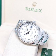 | Rolex 34mm Silver Diamonds Dial Oyster Perpetual Date REF: 115234 (AN) watchcollectorzz (159) |