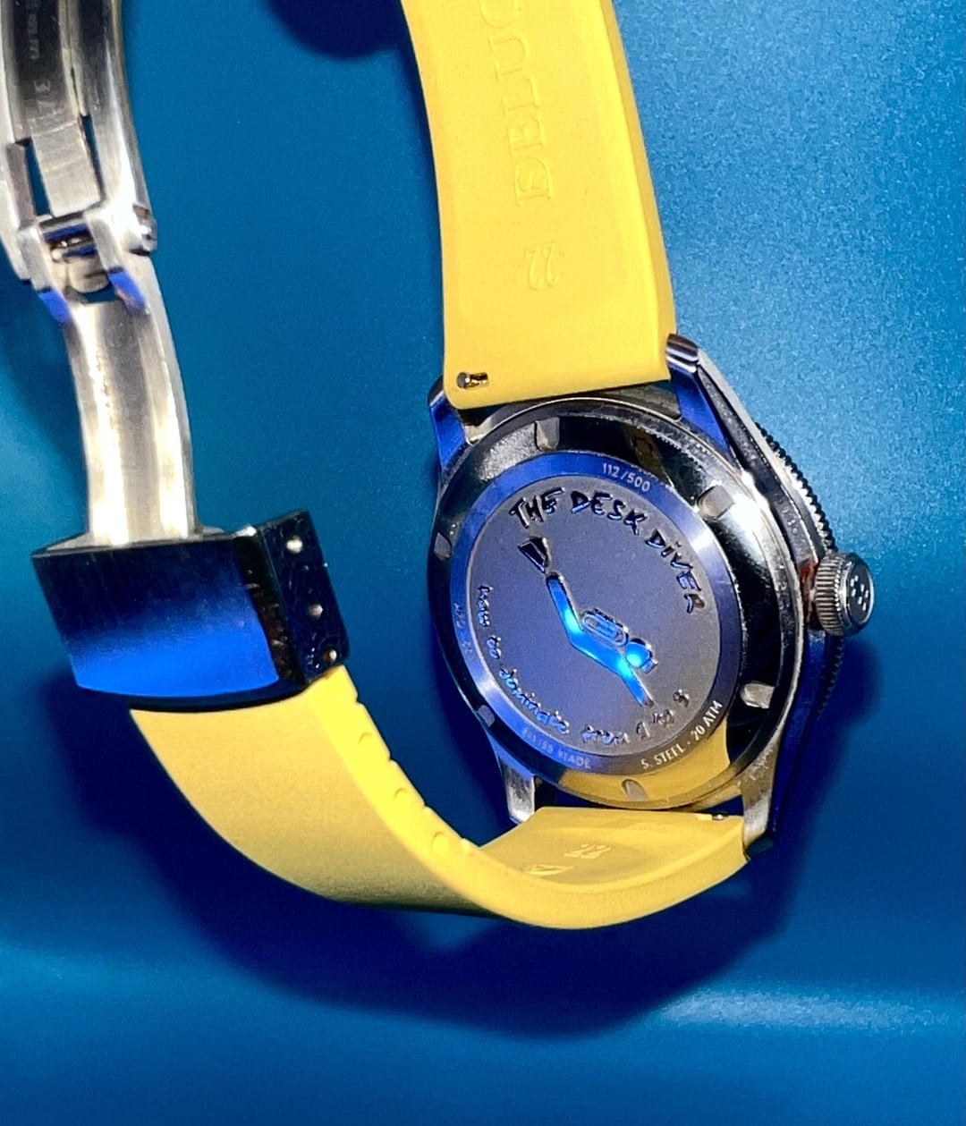 Hello all. New poster here. FOR SALE - I am selling my C65 Desk Diver. It’s on a Stainless Steel Strap w/ DeLugs yellow strap also. Number: 112/500 DeLugs was cut to size but does come with an extra rubber so that it can be resized. All box and papers included, including the novelty ‘stationery’ that was included (untouched). I have worn this piece 5 times. Happy to send further videos or proof. Price: £1260 Located in Edinburgh, Scotland. Can verify my identity in many ways or answer any questions required!