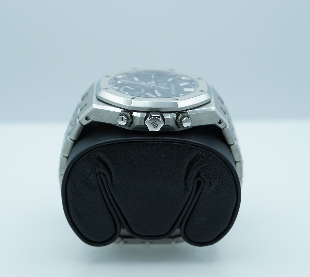 Hi, Selling An Excellent Condition & Very Beautiful 2022 38mm Audemars Piguet Royal Oak Chronograph Stainless Steel with Bleu Nuit Nuage 50 Dial. Purchased from Audemars Piguet Boutique in 2022. The Watch just received complete maintenance service by AP Service Center Clearwater in 02.2025. Watch Running Perfect with Non Issues. Full Links. Full Set & Under 2 Years Factory Warranty.