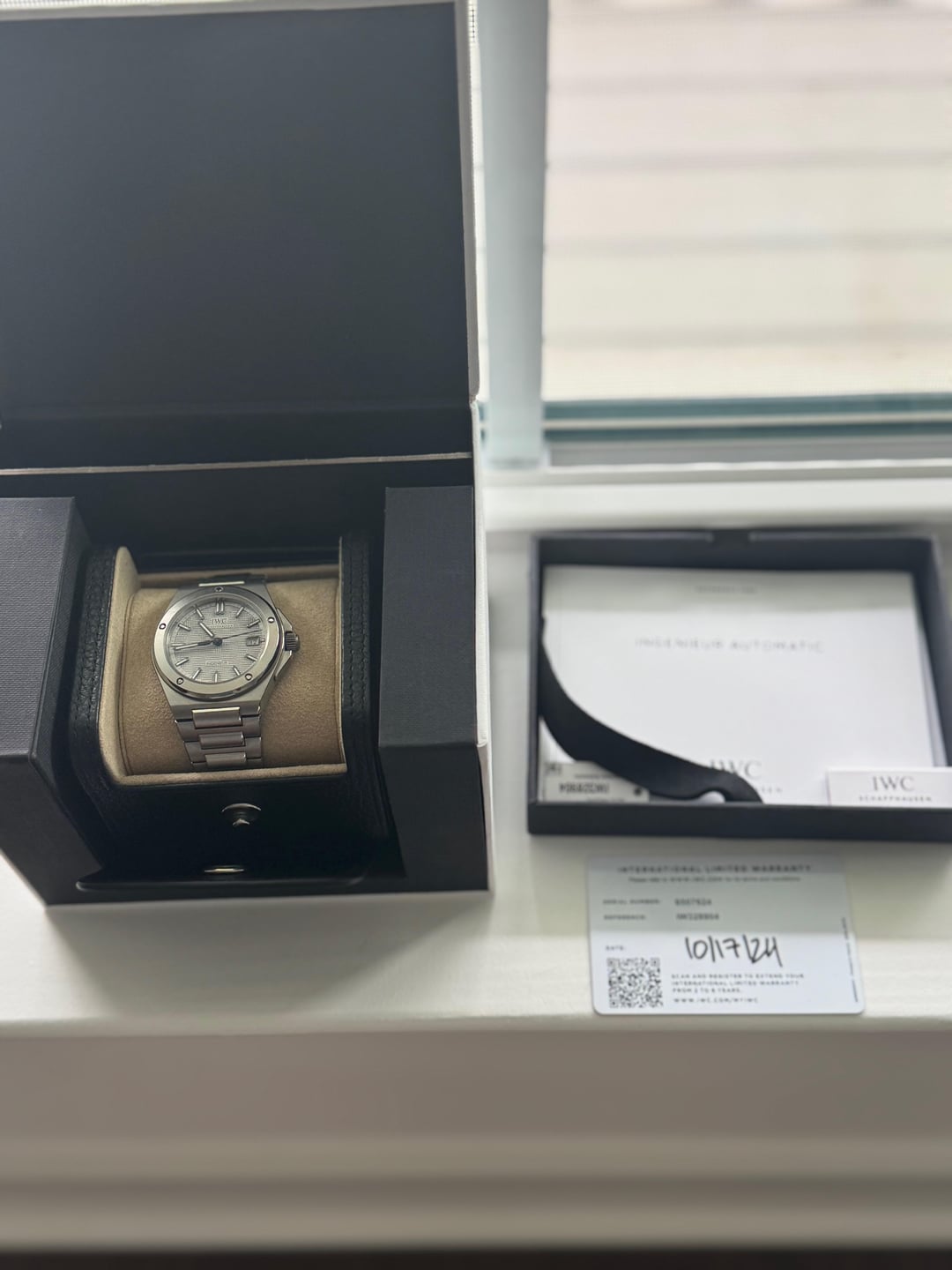 Up for sale is a IWC Ingenieur Titanium 40mm (2024) **Size:** 40mm **Thickness:** 10.8 mm **Reference:** IW328904 **Retail MSRP:** $15,400 **Power reserve:** Approx. 120 hrs **Water resistance:** 100M **Condition:** Watch is in mint condition. Purchased new in 2024 (1 owner). No signs of scratches. Warranty still active. Comes with box, papers, original rubber strap . **Pictures/Timestamp:** Above **Price: $11,500 including shipping fully insured in Continental US.** Payment methods accepted are Zelle and Bank Wire. No PayPal (no exceptions). **Trades:** Unlikely but feel free to send over with model, timestamp, and trade value. Will not engage in trade offers without all of the aforementioned items.