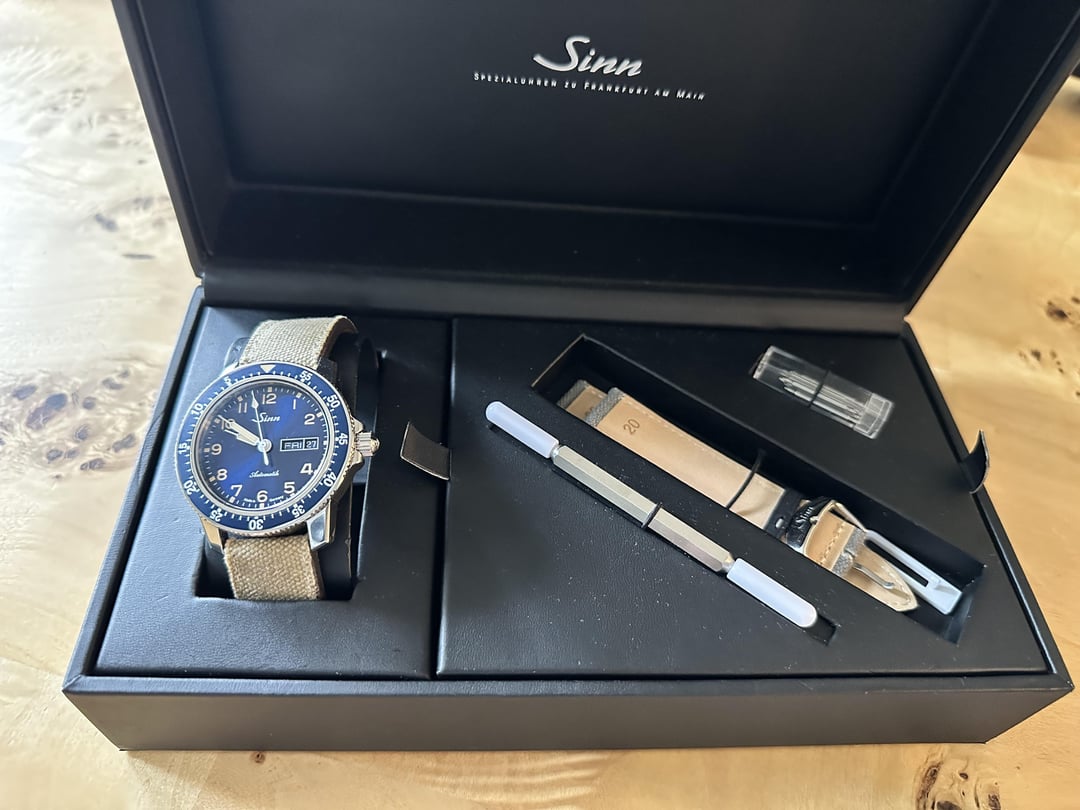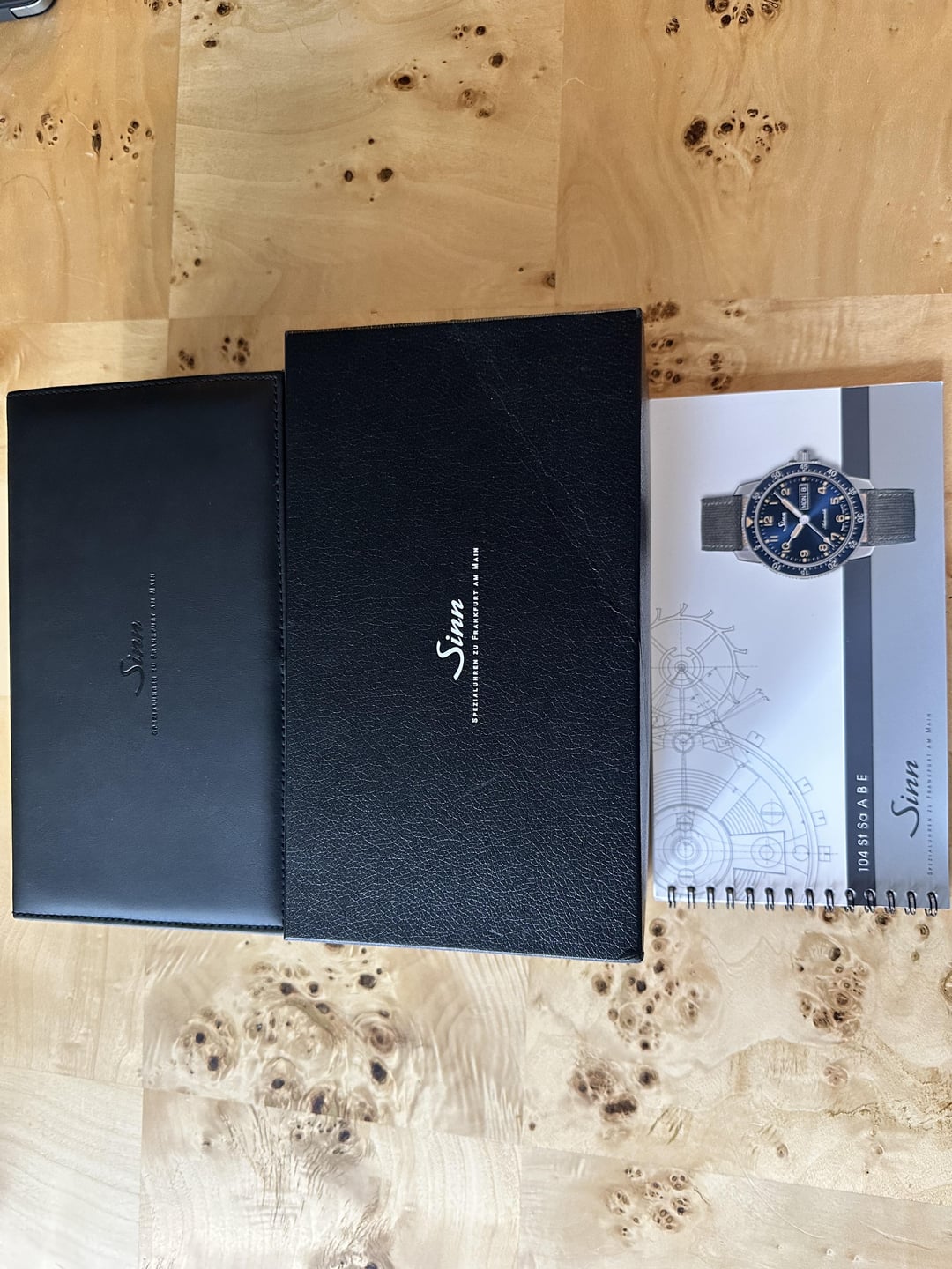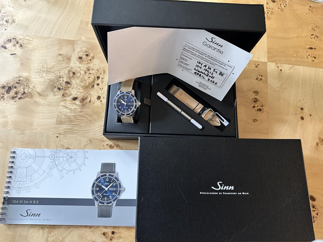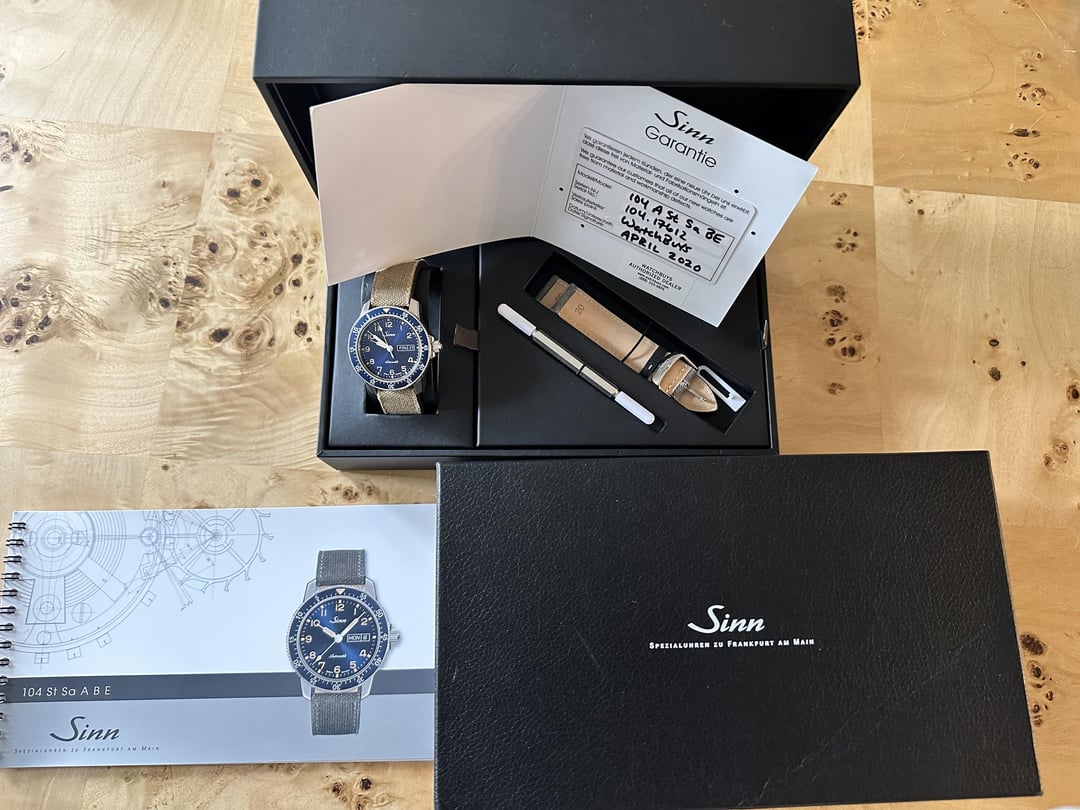 High quality album: [https://share.icloud.com/photos/0077RocM2RwLVrbJh1lHZqLrQ](https://share.icloud.com/photos/0077RocM2RwLVrbJh1lHZqLrQ) **This is your chance to acquire a truly special timepiece – the Sinn 104 Limited Edition Blue, a watch of which only 1,000 exist worldwide.** This particular example is in **excellent pre-owned condition**, meticulously cared for with no major nicks or dings to be found. Both the captivating blue bezel and the crystal are entirely free from any scratches, presenting a pristine face to the world. **A Complete Package:** This exceptional offering includes the **original papers, inner box, and outer box**, ensuring authenticity and provenance. You'll also receive **both original straps**; one is designated as "large," and while the other doesn't specify, both appear to be in good condition, ready for their new owner to wear. Rest assured, this watch comes from a **smoke-free environment**. **The Sinn 104 St Sa A B E is more than just a time-telling instrument; it's a pilot's watch designed for clarity, durability, and timeless appeal.** Its classic aesthetic is matched by robust German engineering, making it a reliable companion for any adventure. **Key Measurements & Specifications:** * **Case Diameter:** 41 mm * **Lug-to-Lug:** 47 mm * **Case Thickness:** 11.5 mm * **Lug Width:** 20 mm * **Movement:** Automatic winding, SW 220-1 * **Case Material:** Stainless steel, polished * **Crystal:** Sapphire crystal with anti-reflective coating on both sides * **Bezel:** Captive pilot's bezel, bi-directional, with minute detent * **Water Resistance:** 200 meters (20 bar) * **Dial:** Galvanic blue, sunburst finish * **Luminosity:** Hands and indices coated with luminescent color * **Functions:** Hours, minutes, central seconds, day and date display * **Crown:** Screw-down crown **Price: $1500 OBO shipped CONUS Shipped from Northampton, MA** **Trades: Willing to trade for a 2022 856/857 or other sinn models +/- money. Also would be interested in a 2022 Tudor Ranger that I would add some cash to.** Don't miss this rare opportunity to own a limited-edition Sinn 104 in remarkable condition. Please let us know if you need additional information or pictures.