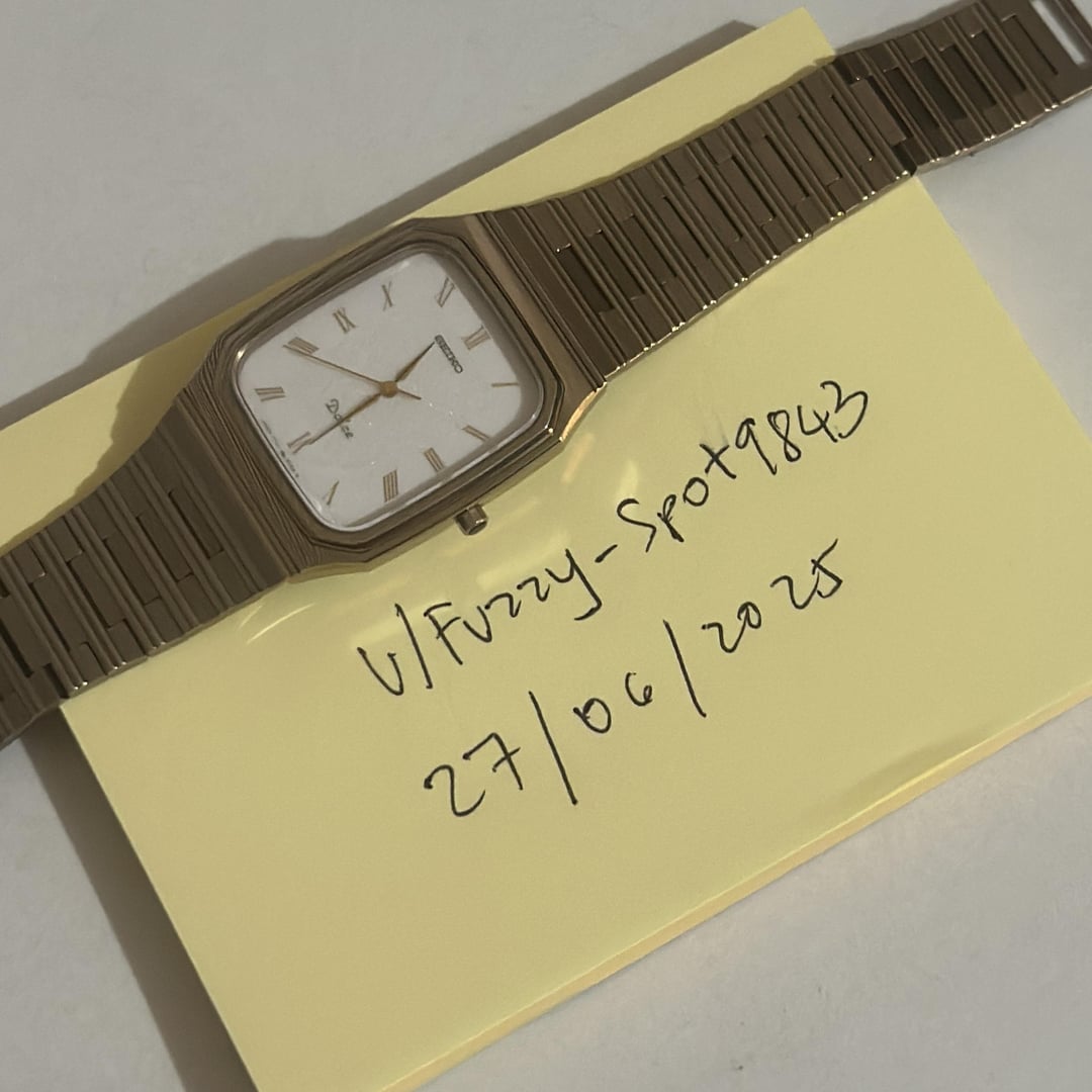 Hi everyone, This is my first time posting here, so please let me know if I missed anything! Up for sale is a beautiful vintage Seiko Dolce Ref. 7741-5130, an elegant and rare tank-style quartz watch from the late 1980s, known for its premium materials and refined look. **Model:** Seiko Dolce Quartz 7741-5130 **Movement:** Seiko Caliber 7741A Quartz **BMBY:** October 1987 **Case Material:** Tungsten Carbide **Crystal:** Sapphire **Dial:** Two-tone sand with Roman markers **Dimensions:** 29mm x 37mm, \~6mm thin **Bracelet:** Original integrated bracelet (fits up to \~16–16.5cm wrist) **Condition:** In excellent vintage condition with only light signs of wear, mostly visible on the clasp. The watch runs accurately and all functions are working properly. **Price:** 300 shipped **Payment:** PayPal Ship via DHL Express