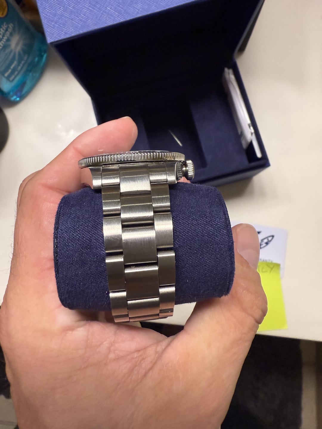 Available is a 2025 Squale 1545 diver in the striking blue sunburst dial variant. Comes on the OEM steel bracelet and includes a Squale tropic rubber strap. A solid, affordable dive watch from a respected brand. Condition: Excellent condition overall. The tropic strap has minimal scuffing, and the clasp on the bracelet is brand new. Crystal and case are clean. What’s Included: • Original box • All paperwork • Squale steel bracelet (new clasp) • OEM tropic strap Specs: • Case Size: 40mm • Lug-to-Lug: 48mm • Lug Width: 20mm • Movement: Swiss Sellita SW200-1 • Water Resistance: 200m • Crystal: Flat sapphire • Screw-down crown • Dial: Blue sunburst with applied markers Price: $750 shipped MSRP: $865 Notes: PayPal Friends and Family is fine. I am in Kansas City if you are local. I can FaceTime anyone who would like to see the watches. I am selling because I got the call on my grail watch. I also am listing a Sinn 856 UTC, Tudor Ranger, and Tudor Black Bay Pro. I will sell them all as a package for $7750. They all come with the OEM Strap and Bracelet. All have warranty cards for the ones still under warranty. We can try other payment methods. We can meet at a local jewelry store if you want to check the watch and do cash as well.