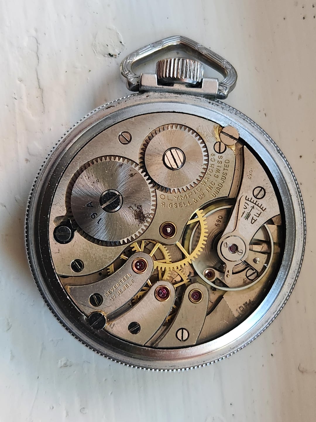 For sale is an Olympic pocket watch. It's in great condition and working properly. It's running and keeping time. Asking $55 shipped CONUS. PayPal F&F.