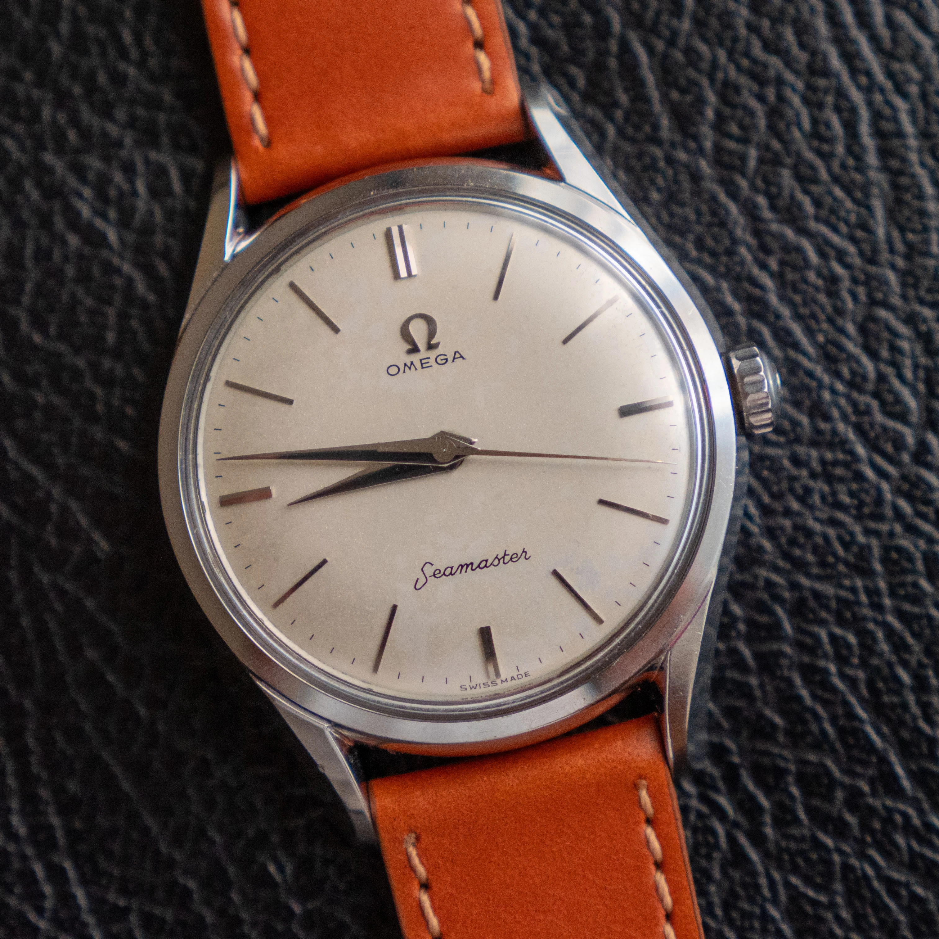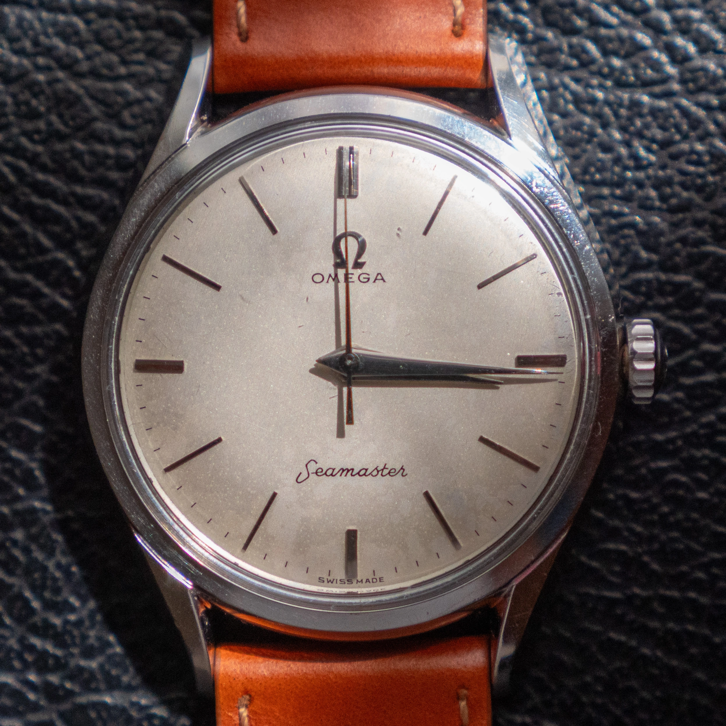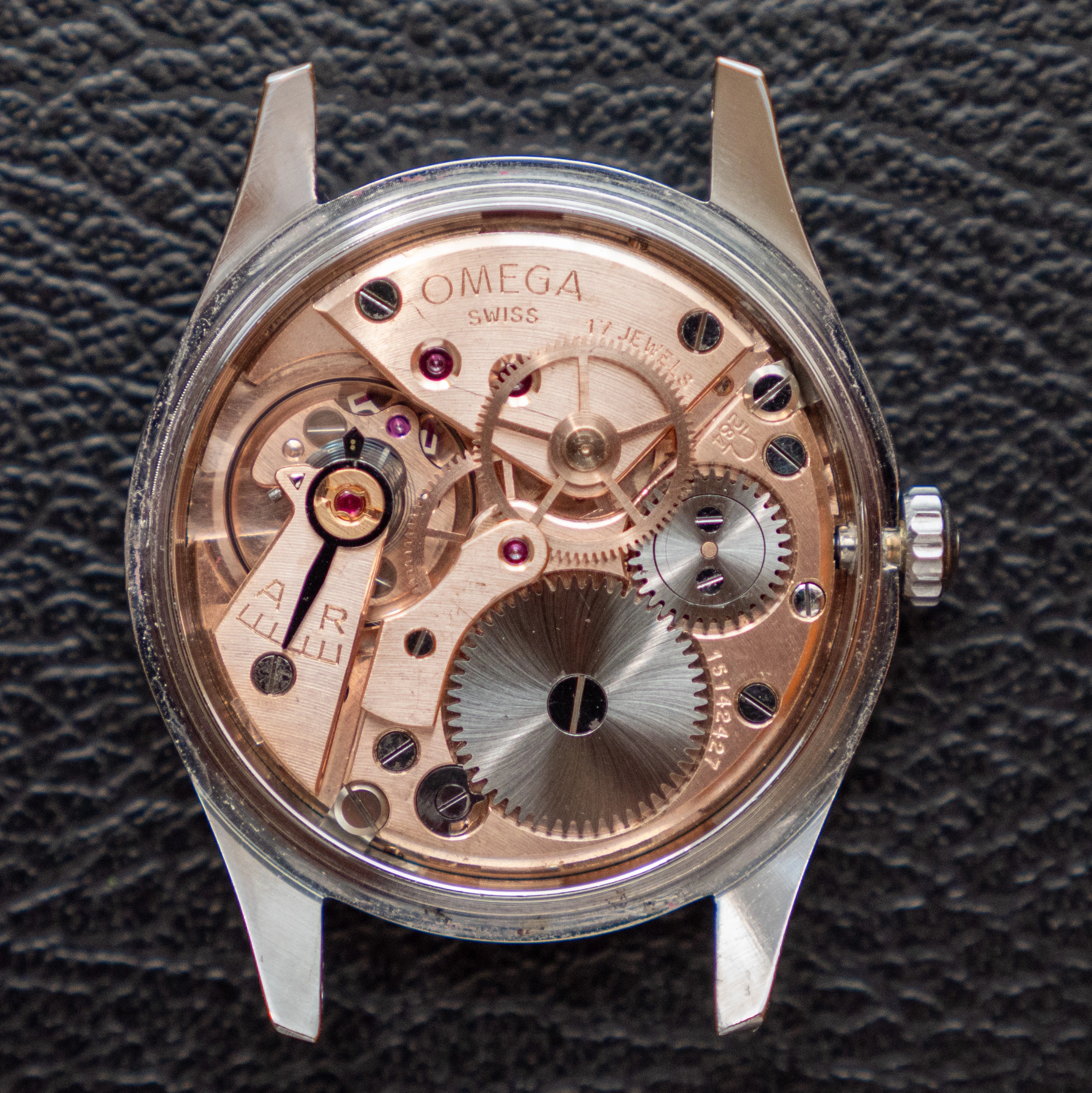- The glass is an original omega part with the little logo stamped on the center. It has some scuffs here and there.