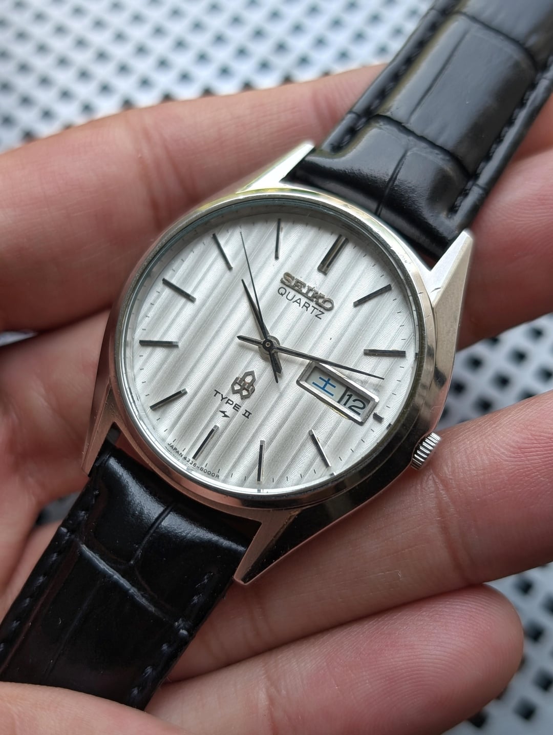 Greetings watchexchange! Up for sale is a stunning Seiko Type 2 quartz with a beautiful white veritcally lined tapestry dial that is incredibly dynamic in different lighting conditions. The watch is in good condition as pictured, the dial has some blemishes(pictured), it has been polished and has received a fresh battery. The watch measures 36mm in diameter and is pictured on a 6.5" wrist for size reference. [Timestamp ](https://drive.google.com/file/d/15yD3BTiM5xrz7NF2vxmzlIi2SizY30n-/view?usp=drivesdk) The watch is priced to sell at $149 paid via Zelle or PayPal FF, and shipped via UPS. Please allow 3 to 5 business days of your payment for the watch to be shipped out. Be sure to reach out to me if you have any questions or require additional photographs or information, I entertain requests for custom timestamps. Thanks for looking!