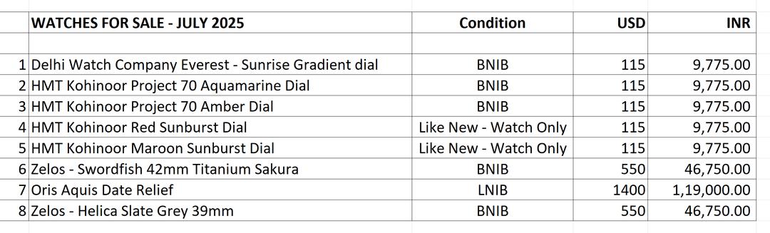 Selling my next batch of watches. Prices exclude shipping. Payment via Paypal F&F