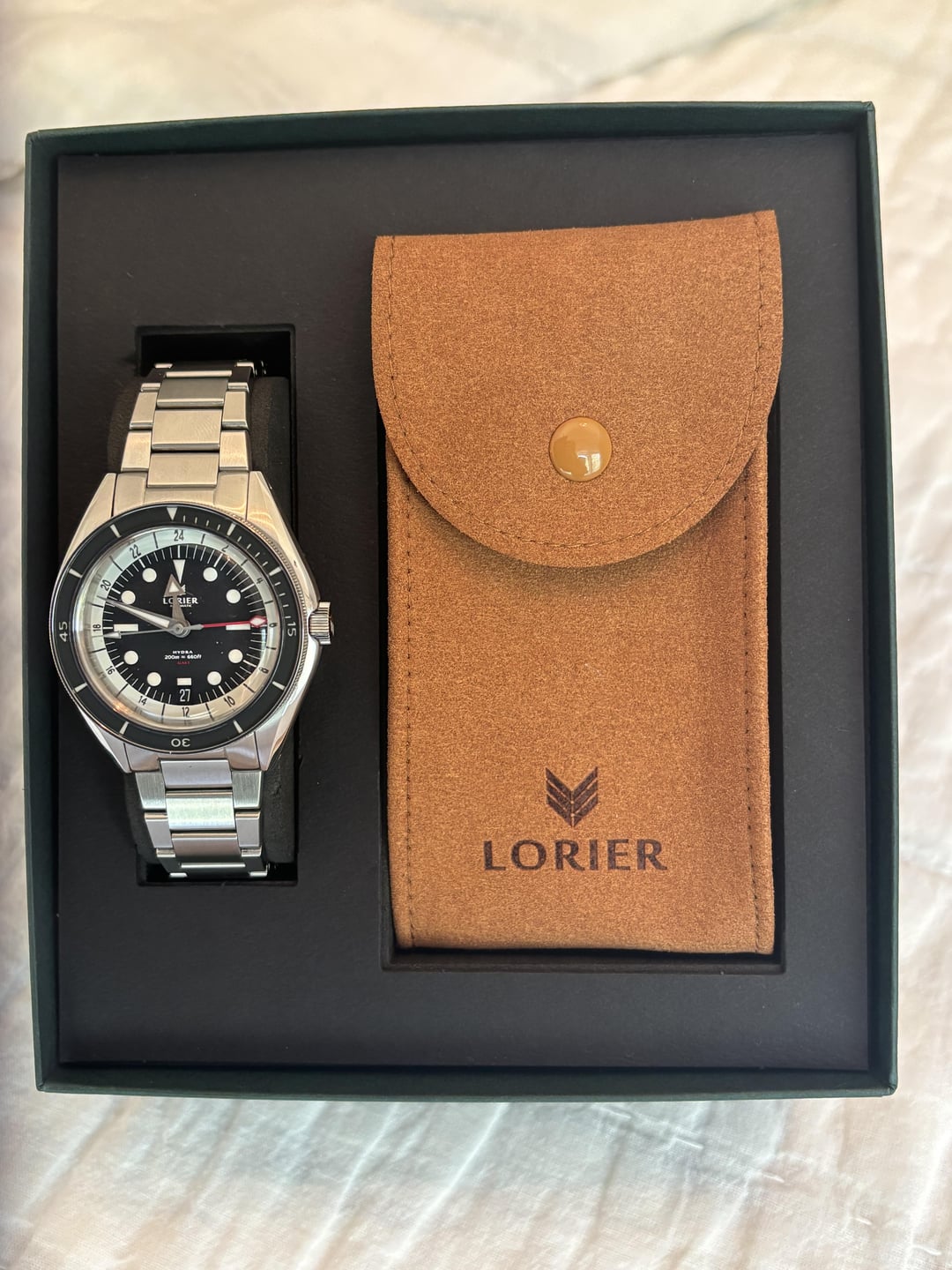 # [WTS] Lorier Hydra SIII GMT – Full Set – $450 Lorier Hydra Series III GMT (SIII) with the Miyota 9075 movement, a true GMT with independently jumping local hour hand.Killer lume too. **Condition:** As new except for a very slight scuff on the clasp (as pictured)**Bezel:** Uni-directional with Hesalite insert.**Case Size:** 41mm**Includes:** Full set of box, card, extra links, Polywatch, screwdriver, and travel case. **Price:**$450 shipped CONUS via Zelle or PayPal F&F