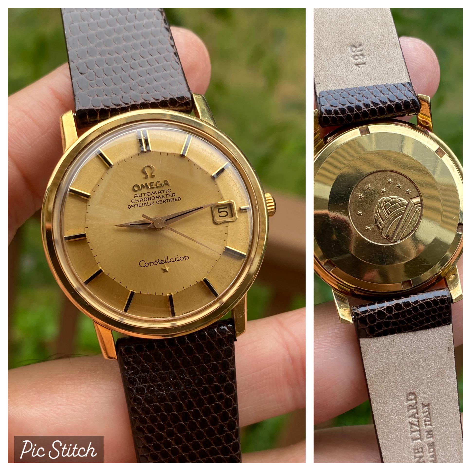 Hello All - I am putting for sale - Omega Constellation. Pie Pan. 18K Solid Gold. Automatic. Clean. Gorgeous lizard leather. 📷 More Pics: https://www.dropbox.com/scl/fo/aqxktt03iy9mgpixed56i/AJQJt7VfyoG0dAsM5o6mRDU?rlkey=o23fs207z5remt3pvnrukag0c&st=u4vrfhyi&dl=0 📆 Timestamp: https://www.dropbox.com/scl/fi/9qkqjs7c7yuoazfd86wqk/Photo-Jul-24-2025-3-57-41-AM.jpg?rlkey=wq33qjnkwtc3y5tv1a26y2tw8&st=d3c3rtfd&dl=0 I am asking $3300 + shipping . Watch located in NJ USA. I am very comfortable doing a facetime to show the watch if needed. Please PM me for any questions that you may have. I am certain it will go to a good home. Thanks for looking. ** My profile has 500+ references. ** Checkout my profile for other amazing watches.