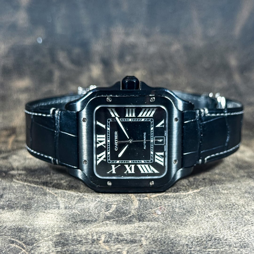 **Cartier Santos Large Roman Numeral ADLC - $7200** **Description:** The Cartier Santos WSSA0039 is a modern icon that combines heritage design with sporty elegance. Featuring a stainless steel case, black ADLC bezel, and Cartier’s signature Roman numeral dial, this model comes equipped with the convenient quick-switch system allowing seamless changes between its included rubber and leather straps. Powered by the automatic Caliber 1847 MC movement, it offers reliable performance with timeless Cartier sophistication. **Condition**: • Set: Full set – box, papers, booklets (latch is broken on box) • Bracelet: Cartier rubber strap with quick release, excellent condition • Additional Strap: Cartier leather strap with quick release, excellent condition • Clasp: Cartier steel deployant buckle • Bezel: Black ADLC bezel, excellent condition • Crystal: Sapphire, no visible scratches • Case: Black ADLC steel, excellent condition • Movement: Running strong, keeping excellent time **Details**: • Year: 6/23 • Model #: WSSA0039 • Case Material: Stainless steel Black ADLC • Diameter: 39.8mm • Bezel: Black ADLC-coated bezel • Crystal: Sapphire • Dial: Black with Roman numerals • Location: Canton, MI **Follow us and see our other listings:** * Detroitwatchexchange.com * Instagram: detroit\_watch\_exchange * Facebook: dtownwatchX **Time Stamp:** [https://imgur.com/a/hU9iXXX](https://imgur.com/a/hU9iXXX)