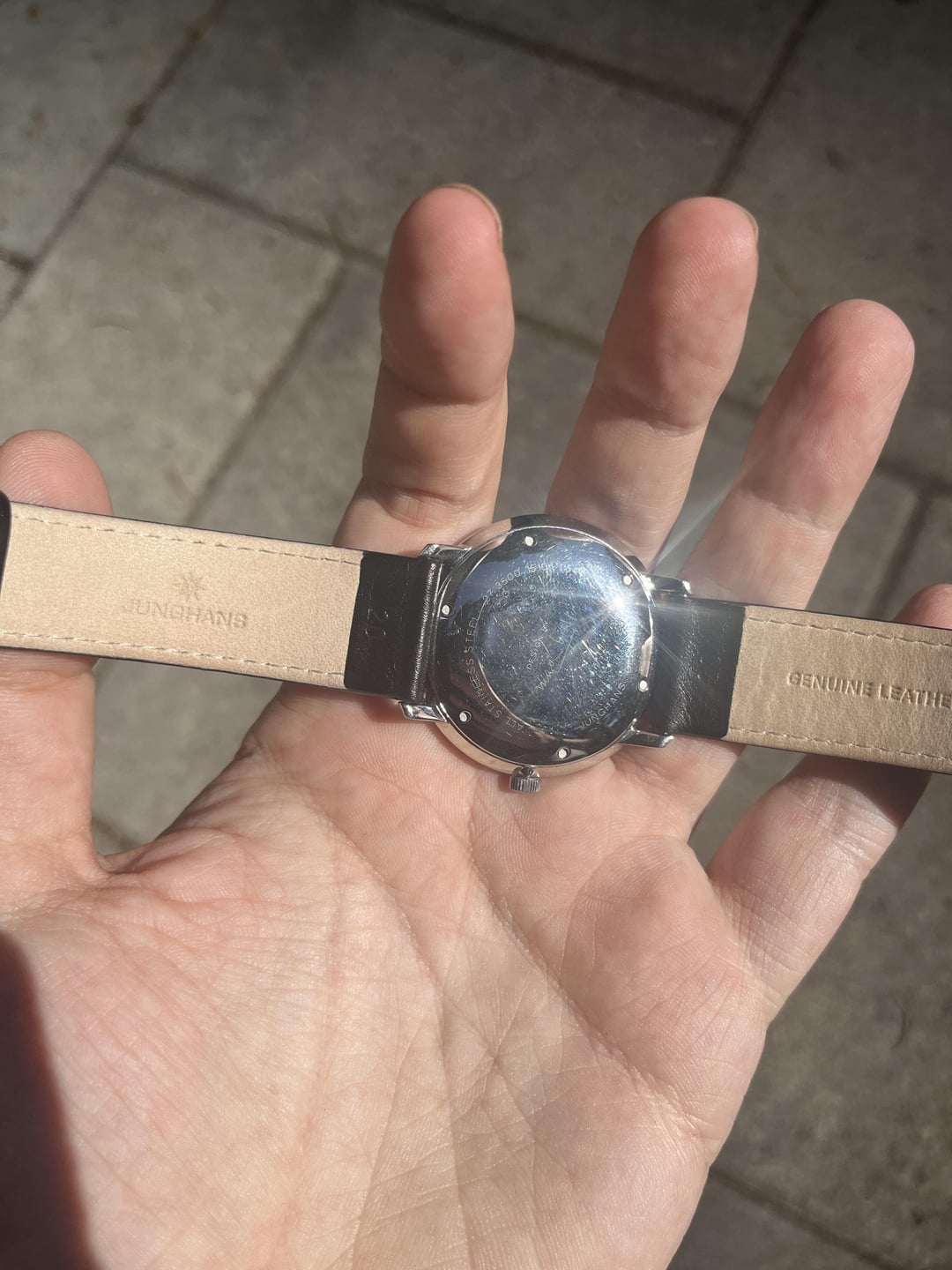 Hello WatchEx, this one is a catch and release by me. I recently when to Junghans Museum and really liked this model (Max Bill) with how symmetrical it is with slim wearing being perfect size etc. I bought one form ebay when i got back to use at work. Turns out I need the day function a lot and I miss that. So selling it as is. Asking $900 shipped in CONUS. There is small scratches behind the case i tried to take pictures but too sunny and the case is polished so it shines a lot. Strap is in very good shape. It is 38mm.