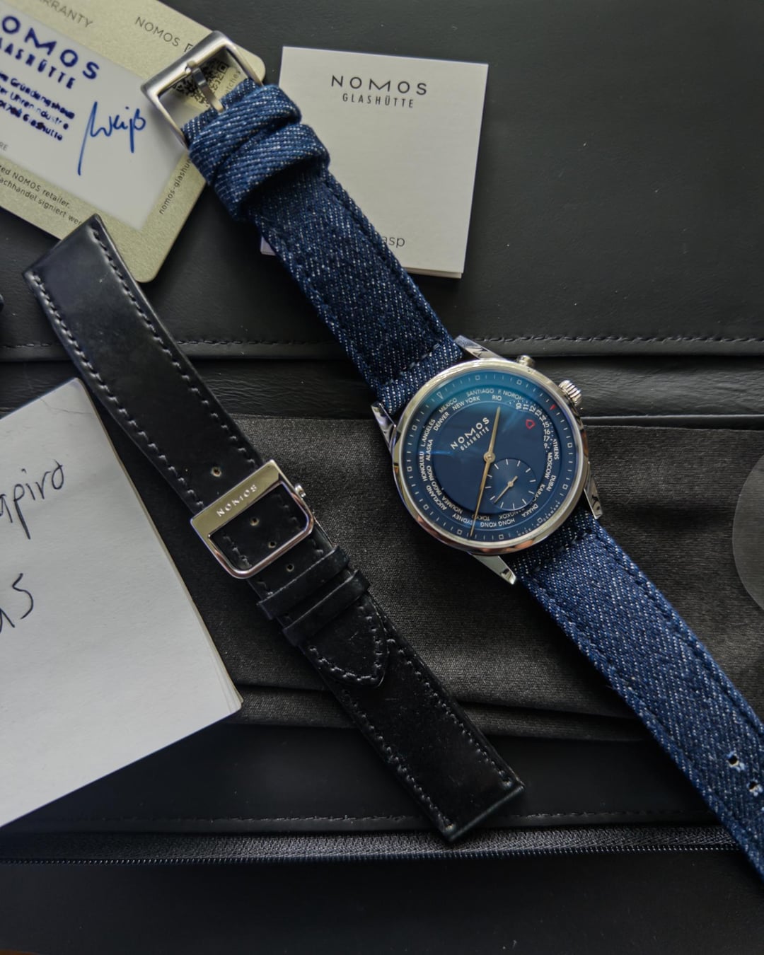 Hey all, Up for sale today is my Nomos Worldtimer. I am the original owner of this watch, bought new in the Nomos Factory Store in Glashutte. Comes with full kit, original shell strap on deployant, and a cheaper denim strap that I purchased afterwards that I think dresses the watch down a decent amount.The watch is in good shape, I've worn it some, but not a ton. Most noticeable marks will be some strap change marks on the lugs (par for the course I guess). This is an exceptionally cool GMT/worldtimer from an exceptionally cool brand -- but it's just not seeing enough wrist time and I'd like it to go to someone that will wear and use it. I am asking $3650 obo via PPFF, Venmo, Zelle etc, shipped within the US. NO TRADES Feel free to DM with any questions!