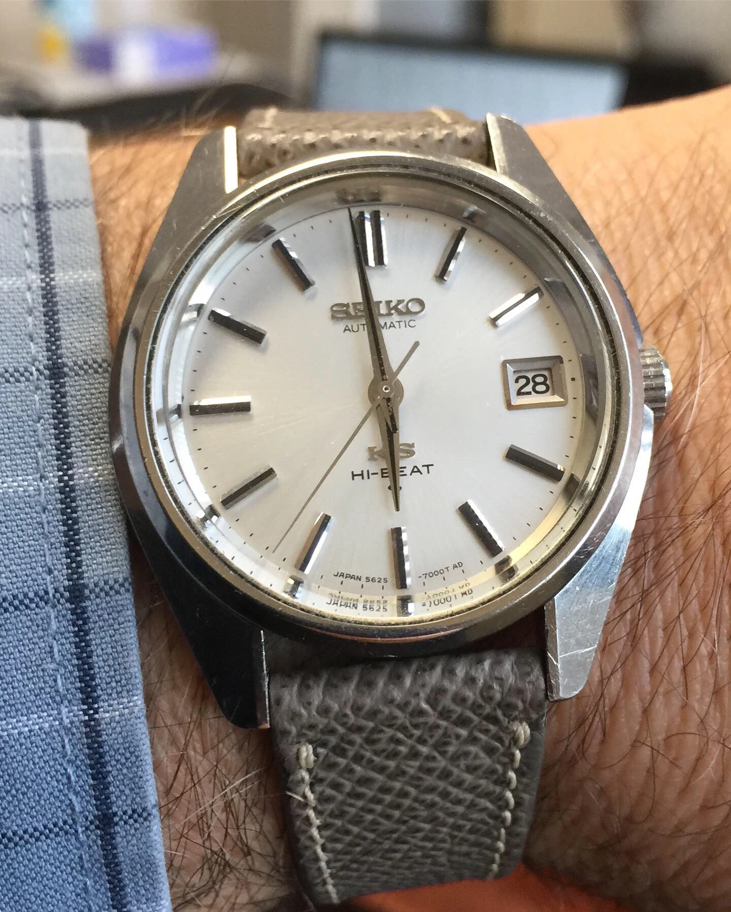 King Seiko 5625-7000 25J Vintage Automatic from April 1969, fully serviced prior to my purchase from known Japanese dealer in Nov 2021. Worn twice, running well with functioning quickset. Dial in outstanding original condition. High end High Beat movement original excellent condition.