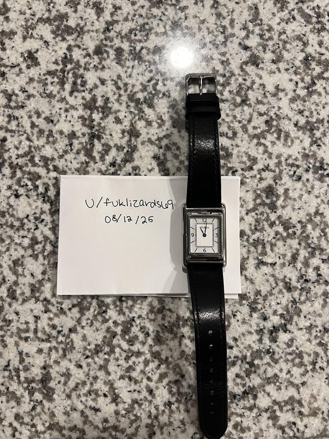 Hey guys! This is the Black MOP/Silver version of the Vario VERSA. Just received but only worn once. Just feel like it’s too big for my small wrist so figured it might be better for someone else. Comes with official Vario travel case and warranty card. It comes with a clasp and buckle if you’d like to change it so I’ll include that as well. Basically brand new and a great looking watch! No scuffs or scratches that I can notice. $350 obo shipped vis USPS Priority Mail CONUS only