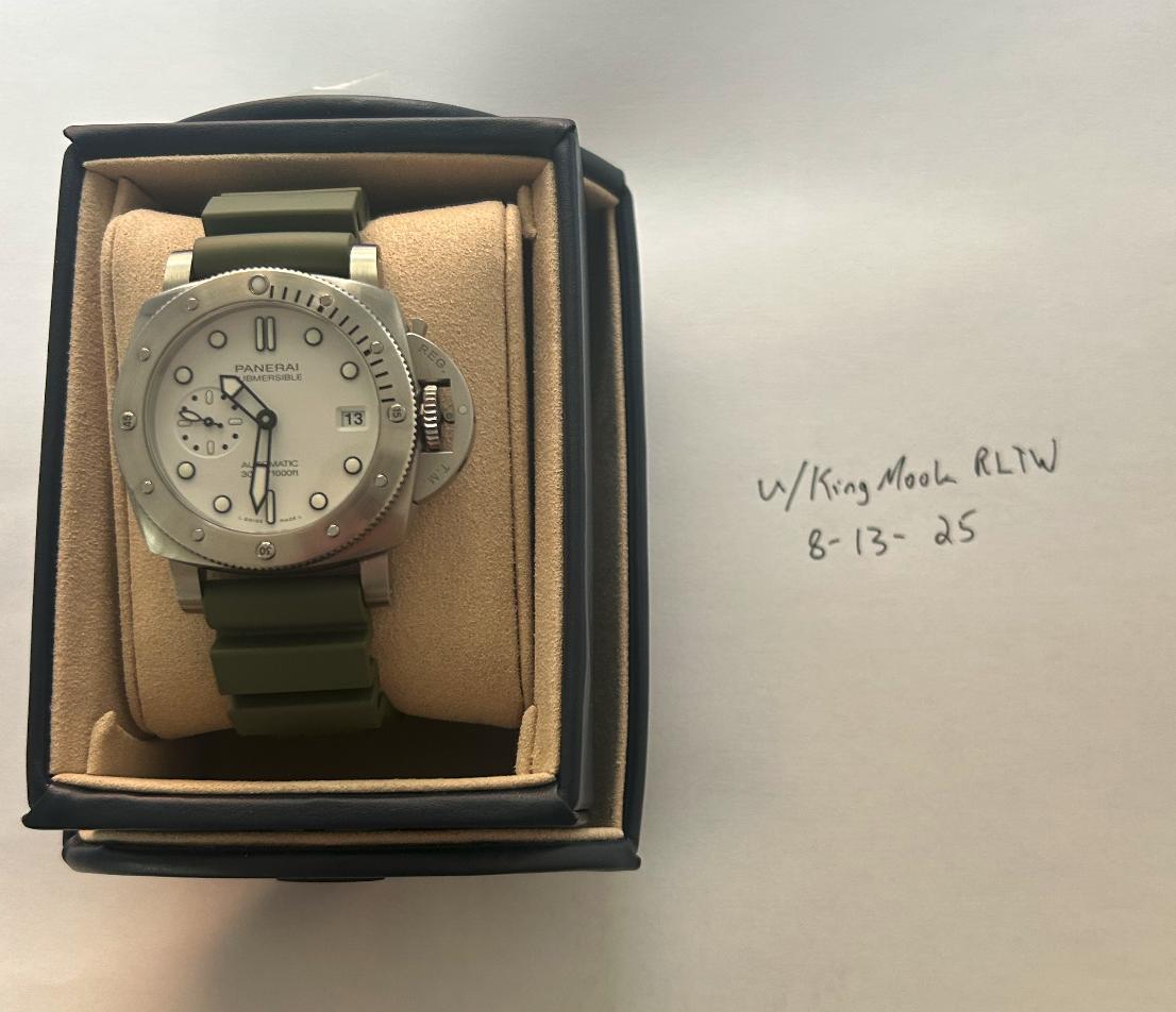 Hi Watch Exchange! Up for sale is a Panerai Submersible 42mm PAM 02223 stamped 2025. I hesitate to ever call a watch mint, but there are noticeable signs of war to my eyes. This was a catch and release for me, but it’s super fun. Included also is a white rubber strap to go along with the green. Full kit box and papers Price: $6950 shipped conus. Happy to meet in person in the Bay Area for a local transaction. Album & timestamp: [https://imgur.com/a/mlCSu7y](https://imgur.com/a/mlCSu7y)
