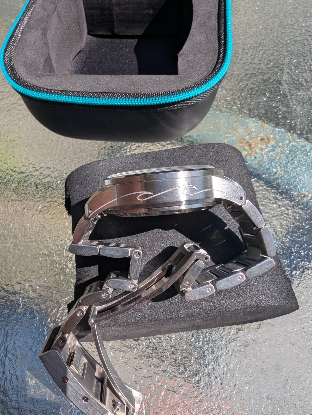 Purchased in March 25. \- Case size: 39mm 316L Stainless steel case \- Case thickness: 13mm including crystal \- Lug width: 20mm Lug to lug: 46mm \- Weight: ( 149 grams with bracelet ) \- Caseback: Sapphire crystal with wave logo caseback \- Crown: Super Smooth dual screw-down crowns \- Movement: JAPANESE Miyota 9039 Premium Automatic \- Dial: Unique textured dial with BGW9 Super-Luminova \- Crystal: Double domed box sapphire crystal with Anti-reflective coating underneath \- Water resistant: 30ATM / 300M / 1000FT \- Strap: Stainless steel bracelet with diver extension clasp buckle 20mm tapers to 16mm 325 USD including shipping. PayPal CONUS. No Trades. Any questions please message me Thank you