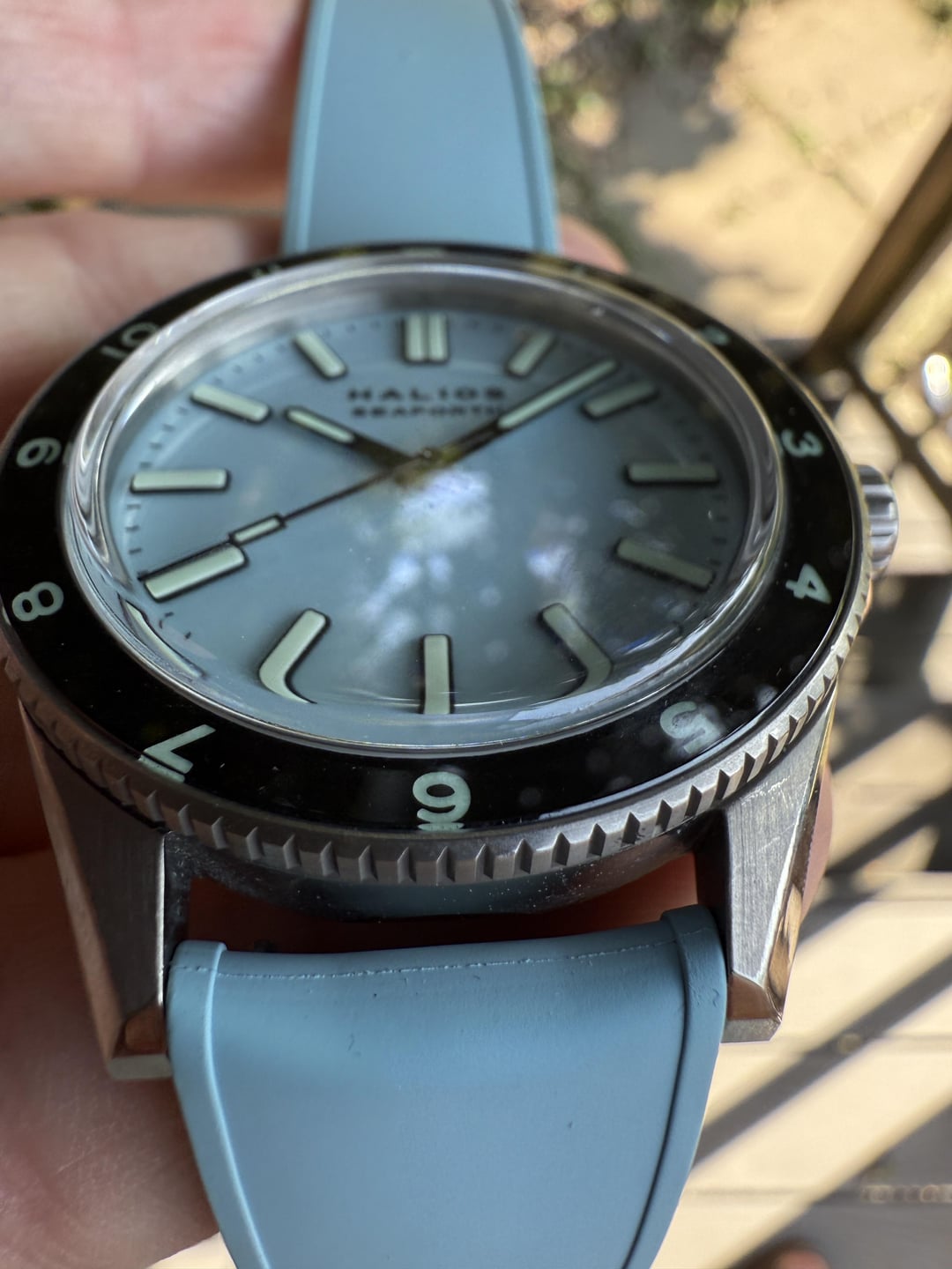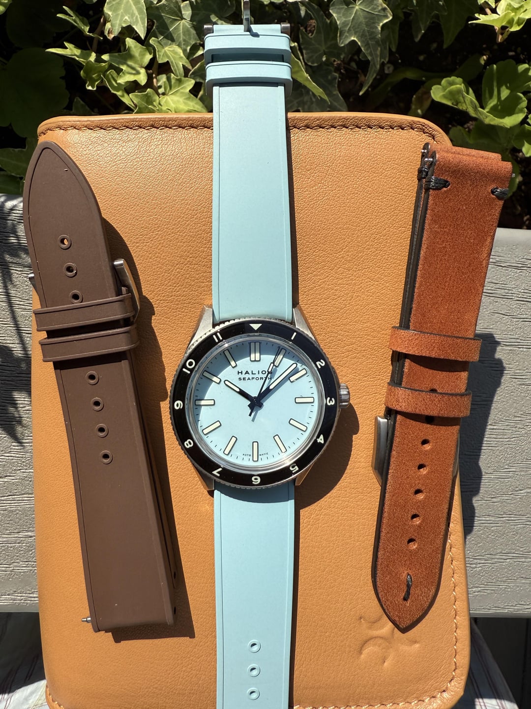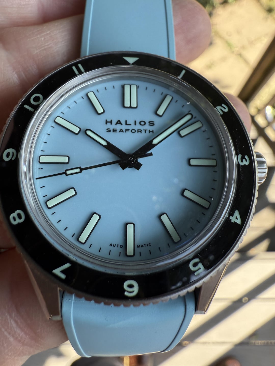 Up for sale is my gorgeous Seaforth IV first generation in pastel blue titanium. A very cool and beautiful dive watch. Complete kit includes: Pastel blue titanium case & S 12hr bezel Matching blue rubber strap Extra unused Halios brown leather strap. Original box, papers, and all accessories Watch is in great condition with some slight brush marks on the side that are barely noticeable. The pastel blue colorway is absolutely stunning - it shifts from light sky blue to deeper ocean tones depending on the lighting. The titanium makes it incredibly lightweight and comfortable for daily wear. Also running at around 4spd. The Seaforth IV features: • 41mm titanium case • 200m water resistance • S crystal with AR coating • Sellita SW200-1 self-winding movement, no-date only automatic movement • Unidirectional rotating bezel Looking for $720 ppff shipped in CONUS
