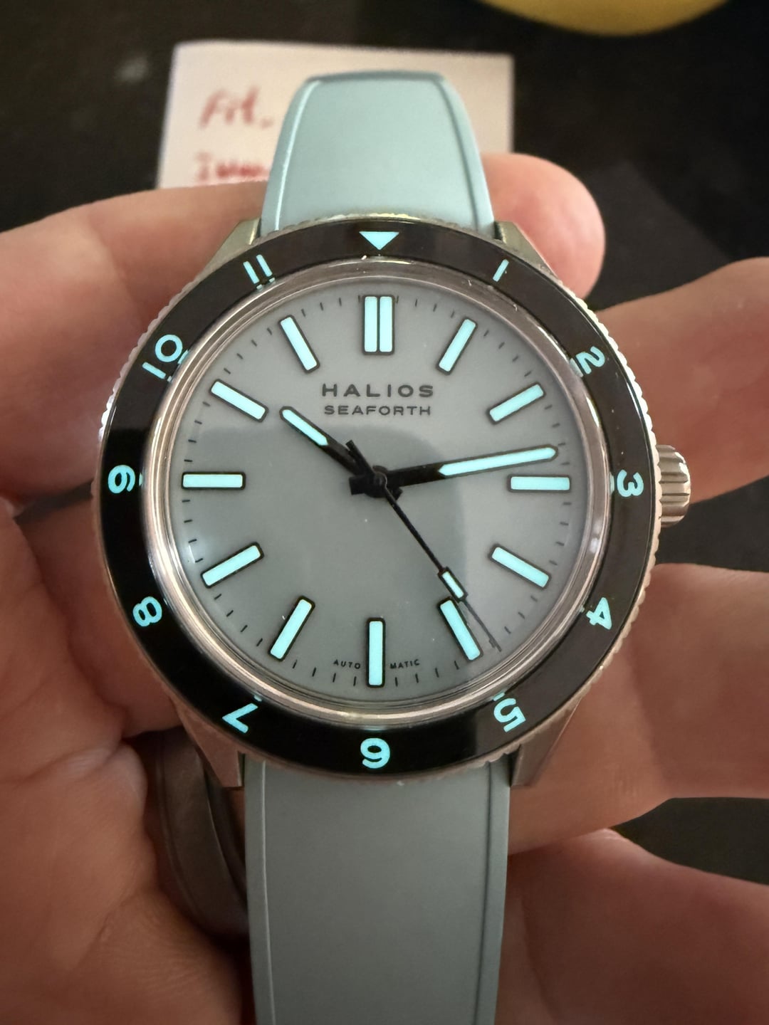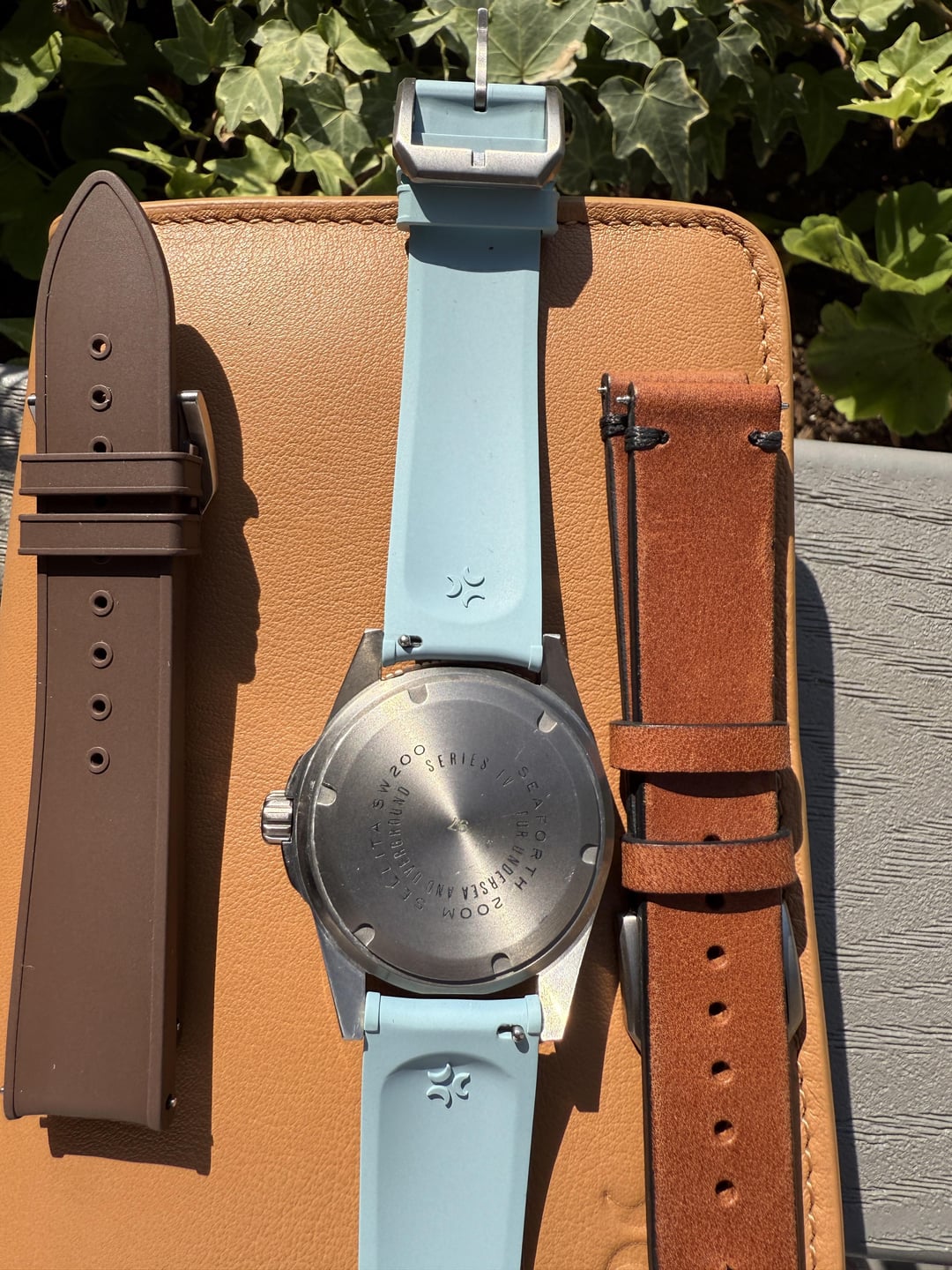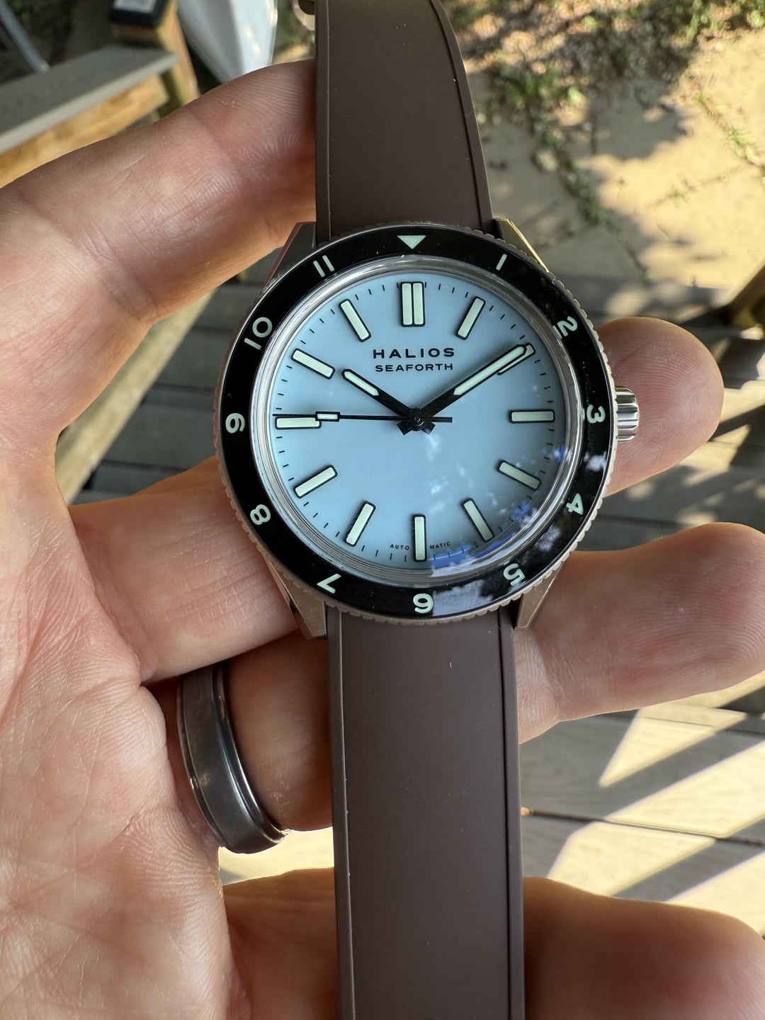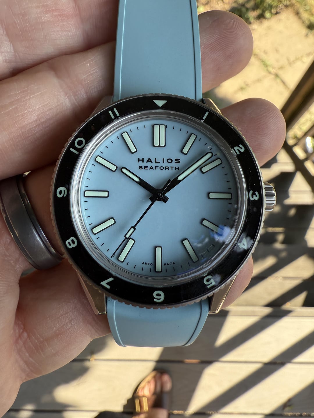 Up for sale is my gorgeous Seaforth IV first generation in pastel blue titanium. A very cool and beautiful dive watch. Complete kit includes: Pastel blue titanium case & S 12hr bezel Matching blue rubber strap Extra unused Halios brown leather strap. Original box, papers, and all accessories Watch is in great condition with some slight brush marks on the side that are barely noticeable. The pastel blue colorway is absolutely stunning - it shifts from light sky blue to deeper ocean tones depending on the lighting. The titanium makes it incredibly lightweight and comfortable for daily wear. Also running at around 4spd. The Seaforth IV features: • 41mm titanium case • 200m water resistance • S crystal with AR coating • Sellita SW200-1 self-winding movement, no-date only automatic movement • Unidirectional rotating bezel Looking for $720 ppff shipped in CONUS