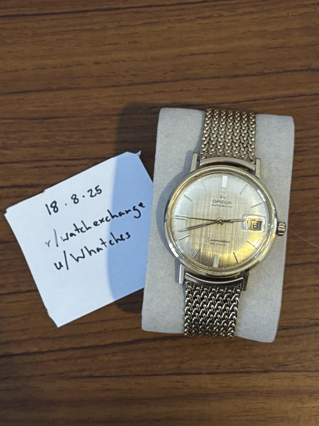 **1968 Omega Seamaster DeVille - Linen Dial, 14K Gold Filled - Ref. KM6292, Cal. 563** Timestamp: [here.](https://imgur.com/gallery/1968-omega-seamaster-deville-14k-gold-filled-linen-dial-ref-km6292-cal-563-1kD1grZ) Price: $2,780 USD Location: Melbourne, Australia Shipping: Australia-wide included; international shipping available at buyer’s expense Payment: PayPal F&F (International), Bank Transfer (AUS only) **Description:** Up for sale is another vintage Omega Seamaster from the 1960s, reference KM6292, housing the automatic Calibre 563 movement. This is one of my first posts to r/watchexchange, so happy to send additional photos or video if you’re interested. **Condition:** - Case: 34mm gold filled case, excellent condition. - Lug width: 17mm - Dial: Original linen dial, excellent condition. - Crystal: Original omega acrylic crystal, excellent condition. - Bracelet: Era-correct 1960’s JB Champion 10K gold filled mesh bracelet, with Omega stamp. - Movement: Automatic calibre 563, recently serviced, running well and keeping good time. . Please feel free to ask any questions or request additional photos/video. Open to reasonable offers. Thanks for looking.