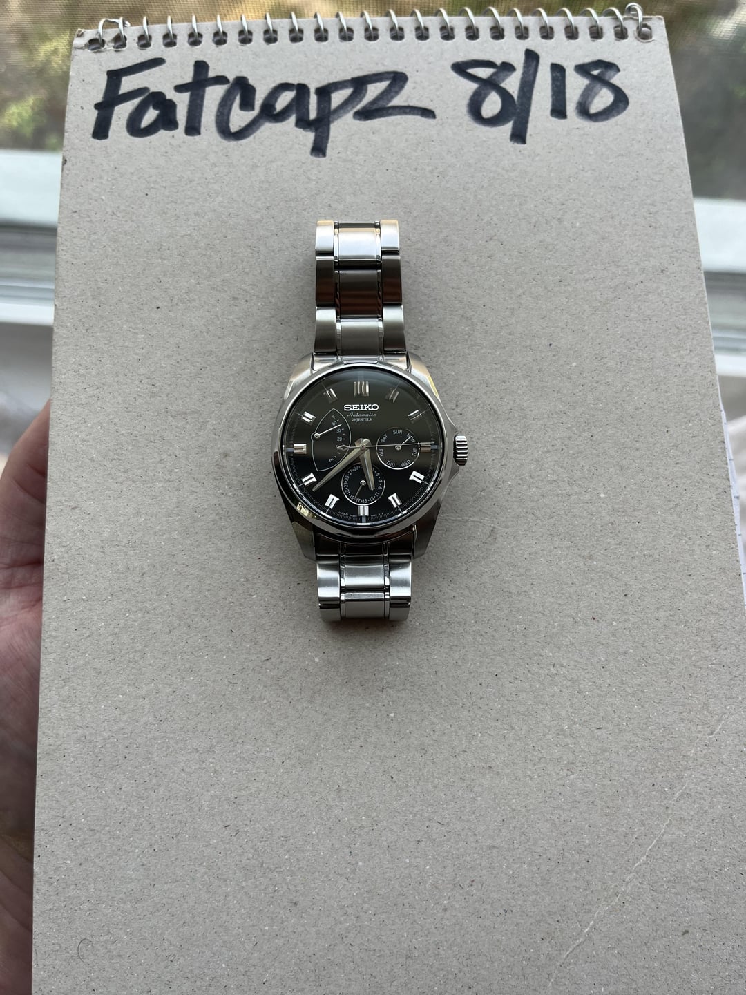 I have a Seiko Sarc007 in lightly used condition with some minor bracelet scratches. I bought this watch approximately a month ago on here from a seller based in Japan. This is a sharp looking watch that I’m only selling to fund another purchase. It’s keeping great time and fits up to a 7.5 inch wrist. It comes with an extra link, Seiko box, collars, and pins that I paid extra for. I’m based in the US and will only ship in the CONUS. $499 and I’ll cover shipping costs. Zelle, PayPal, cash app, Venmo. I’m willing to send more pictures on request.