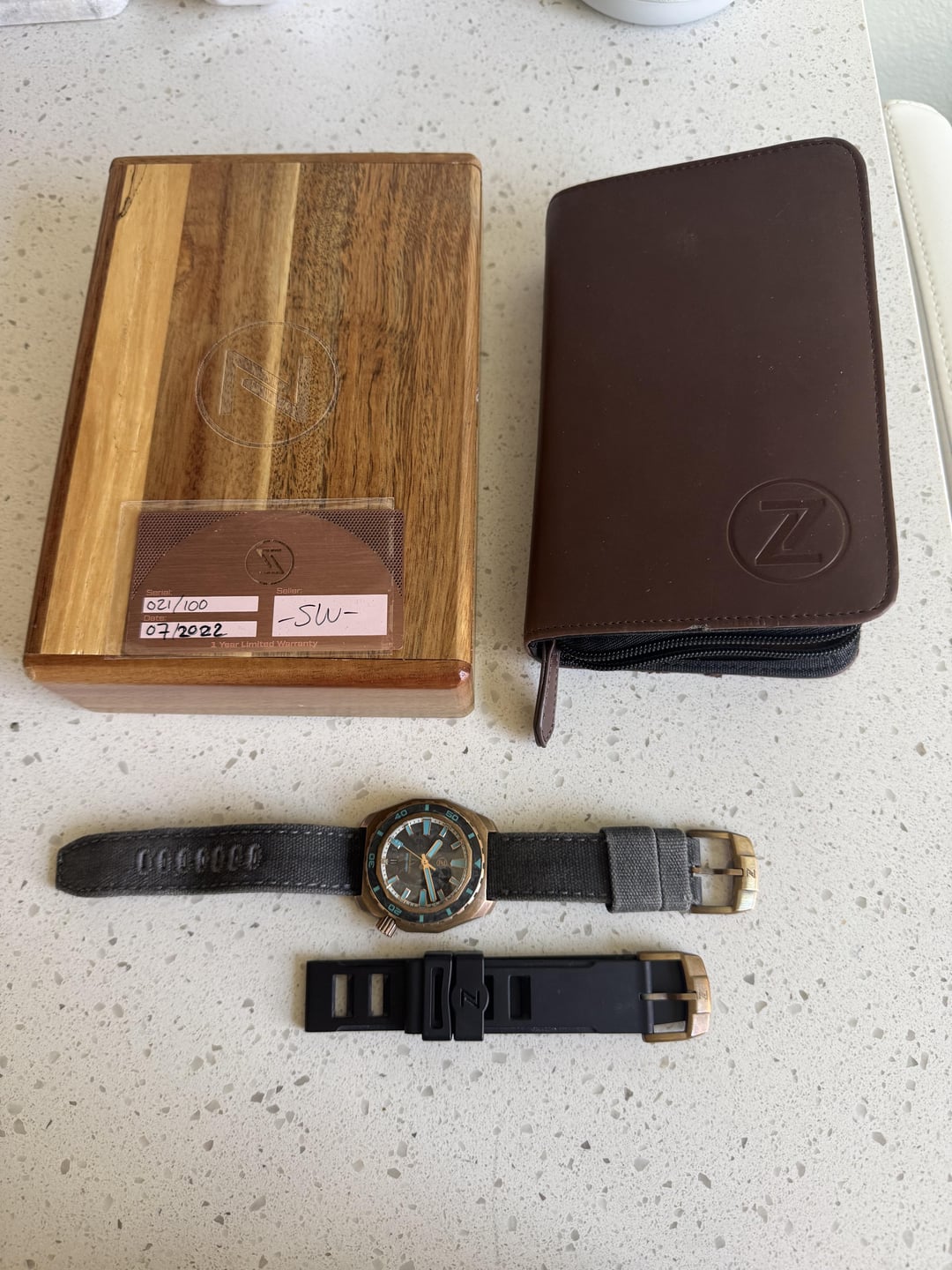 Zelos Hammerhead V3 Bronze Limited Edition Completely full set with both straps. **$499** / Zelle, Venmo, or WU accepted. Timestamp: https://imgur.com/a/b9meLJp I have **tons** of references on multiple platforms including WatchExchange. We also are a 5-STAR rated business on Google!