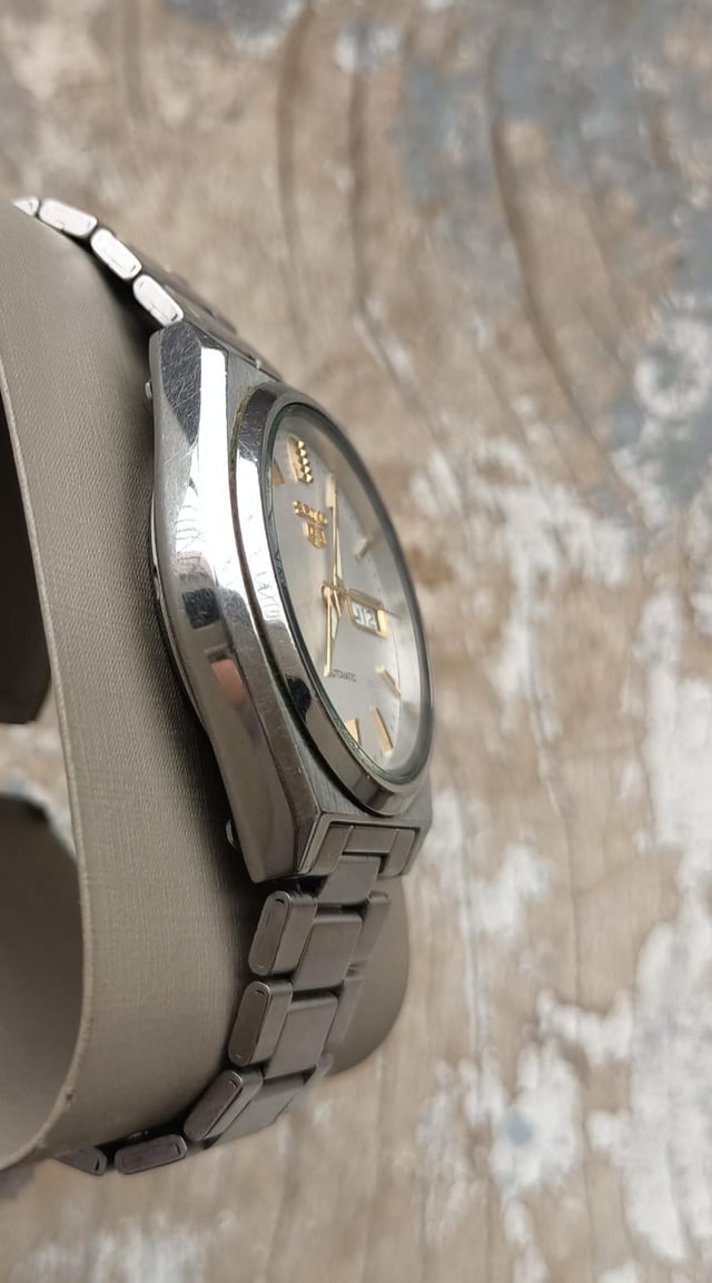 Seiko 5 Automatic. Model -7S26-8760. Year period 1997. Description and Features: Overall this is in good Working condition. The dial is in good condition with no fading. Day & date display at 3 o’clock. Movement: Seiko Caliber 7S26. 21 jewels Automatic. Origin: Made in Japan. Glass: Crystal: Hardlex. Dial White with gold hands & indices. Case material: Stainless steel (screw‑back). Wrist size: approx. 7.2 Inches. Clasp: Standard Seiko fold-over clasp. SPECIFICATIONS: Movement: Automatic, Case Diameter, 38 mm, Thickness 11 mm, Lug Width 20 mm, Lug to Lug 42 mm, Watch only. Please comment before messaging. Payment Method: PayPal friends & family, Crypto, Payoneer & Binance Only. Shipping From FedEx Express Shipping. Price $120 Shipped. After payment confirmation the scheduled shipping time will be 2-3 working days.