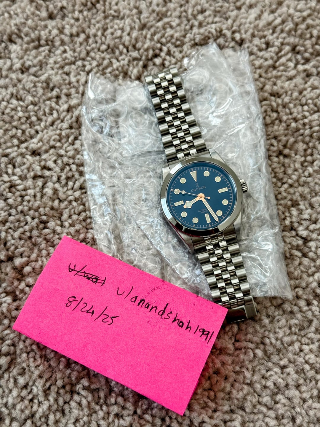 Going through a collection sell off to fund a major purchase. Please check out my other listings! Happy to combine sales for a discount. Anyone who purchases more than two watches will receive the Casio A158 for feee Up for sale is my favorite Chinese watches. It is homage of Black Bay 36 on Jubilee bracelet. Cronos knocked it out of the park with this release. This watch looks so much more expensive than it is. Build quality is excellent. Bracelet, clasp, case everything is of substantial feel, fit and finish. The movement keeps great time. Overall, I have no complaint with these Quick Specs: Case Material : Stainless steel Diameter : 36mm Thickness: ~10mm Lug to lug: 44mm Glass : Sapphire Crystal Dial: black Movement: PT5000 high beat automatic movement Water Resistance: 100m Power Reserve: 42 hours I’m asking for $120 shipped from USA. Zelle preferred, wise, PP F&F/Venmo also accepted. References: please check out my feedback https://watchcharts.com/repcheck/watchuseek/anand.shah1991/feedback AND https://watchcharts.com/repcheck/reddit/anandshah1991/feedback I am comfortable with FaceTime calls and in person transaction in upstate SC area