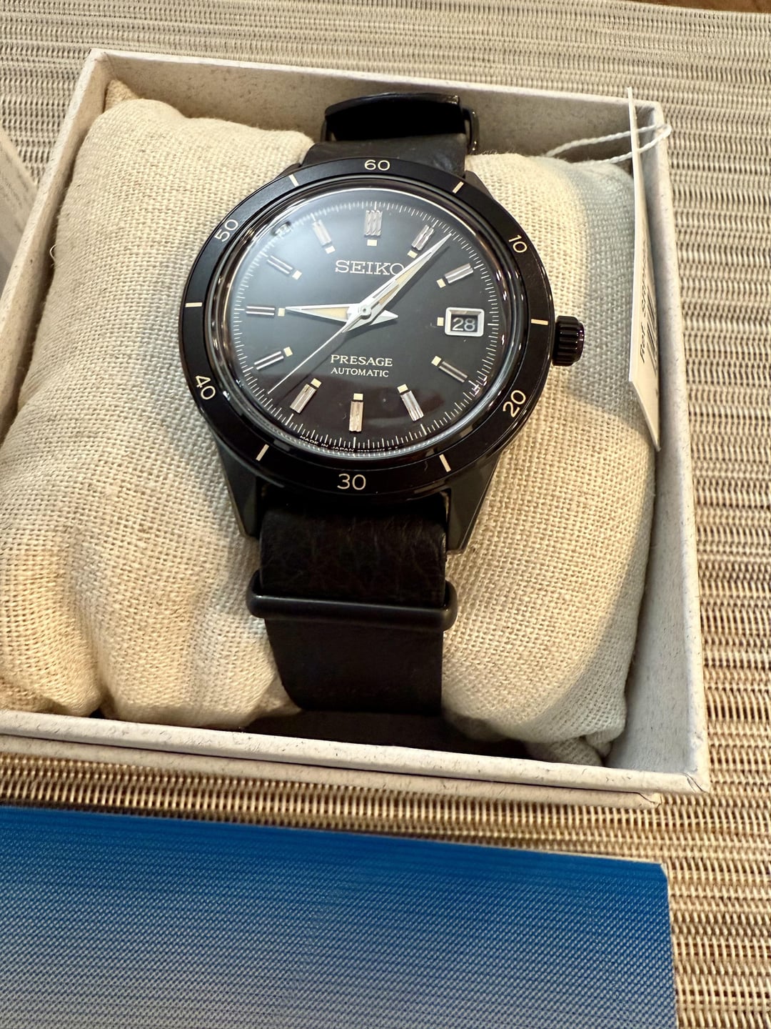 Going through a collection sell off to fund a major purchase. Please check out my other listings! Happy to combine sales for a discount. Anyone who purchases more than two watches will receive the Casio A158 for free Up for sale is a brand new stealth Seiko presage SRPH95J1. These variants are still made in Japan. This particular example is brand new. Comes with full kit Quick Specs: Ref: SRPH95J1 Retail: $525 plus tax Case Material : Stainless steel black PVD Diameter : 40mm Thickness: ~12mm Lug to lug: 47mm Glass : Hardlex Dial: Black dial with silver hands and indices Movement: 4R35 Power Reserve: 41 hours I’m asking for $340 shipped from USA. Zelle preferred, wise, PP F&F/Venmo also accepted. References: please check out my feedback https://watchcharts.com/repcheck/watchuseek/anand.shah1991/feedback AND https://watchcharts.com/repcheck/reddit/anandshah1991/feedback I am comfortable with FaceTime calls and in person transaction in upstate SC area