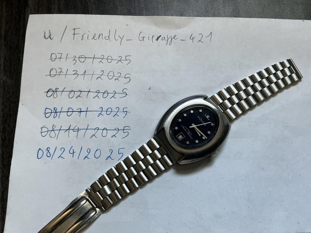 **SPECS:** Manufacturer: LeCoultre Ref. number: E559 Movement: Automatic (K883) Case Material: Stainless steel Crystal: Acrylic Band: Lecoultre signed bracelet which will fits up to 6.8 inches wrist Box/paper: No **CONDITION:** The watch was recently serviced and is running at +-10s/day with an amplitude around 280. The case is in fair condition with noticeable scratches. Everything is original. **DIMENSIONS:** Case (w/out crown): 36 mm Lug to Lug: 40 mm Lug Width: 20 mm Thickness: 11 mm **PRICE:** I’m asking for 1500 USD shipping included (CONUS). I accept Paypal FF or Paypal G&S + 4%, Zelle, and Venmo. Or local pickup in OC or LA (I might consider a trade if you are local). The watch will be shipped with UPS or USPS and fully insured. **Please check out my** [profile ](https://www.reddit.com/user/Friendly_Giraffe_421/submitted/)**for more interesting pieces. Thanks**!