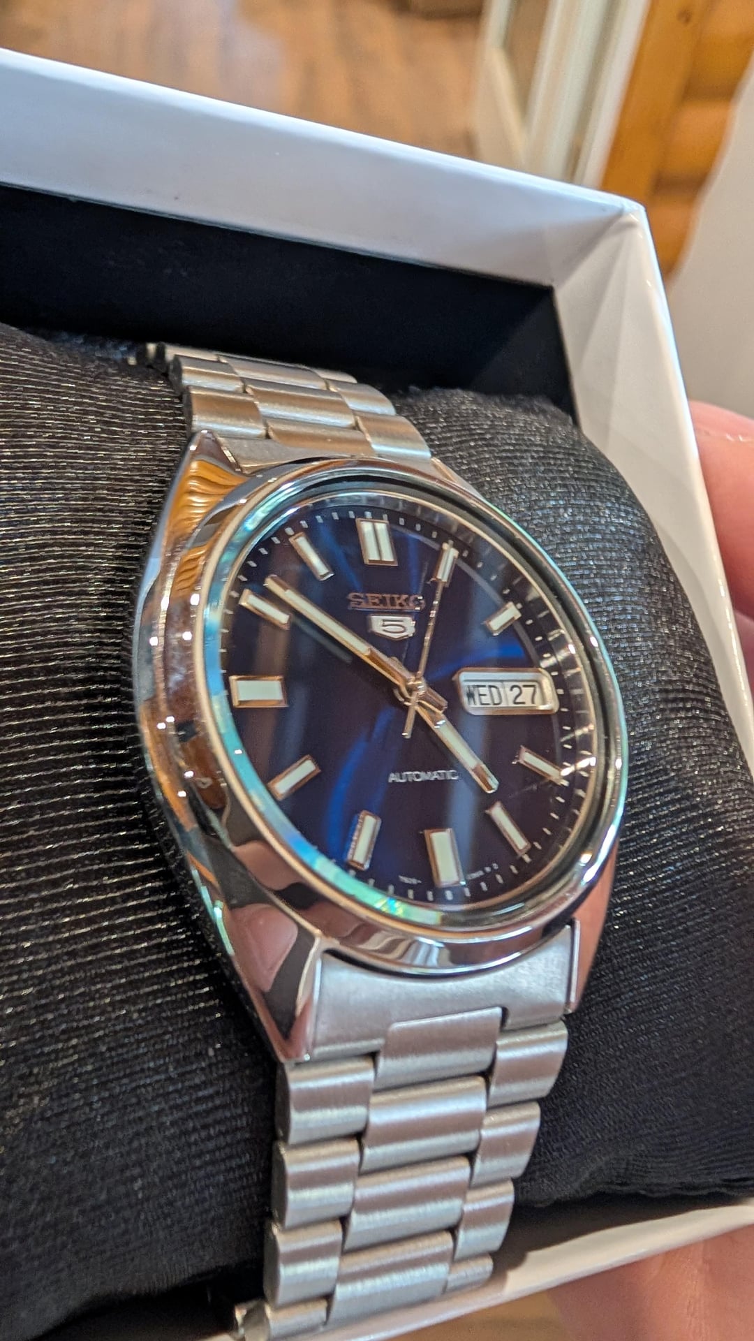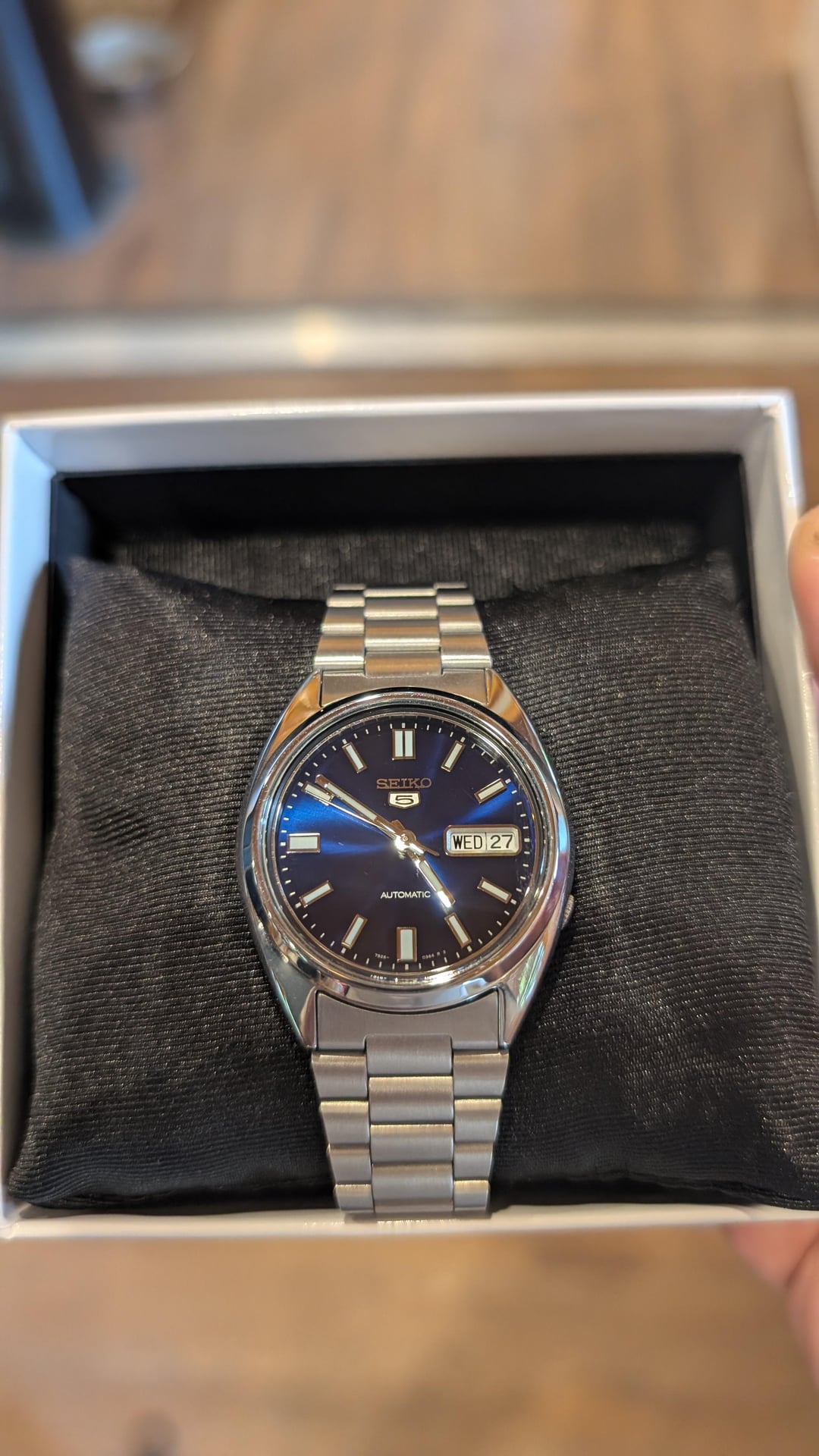 Selling a Seiko 5 SNXS77 Blue Dial Only worn around the house a couple of times, the bracelet is unused and unsized. In excellent condition. Asking $90 PayPal, Venmo, Zelle Happy to jump on a video call or take messages with any questions!