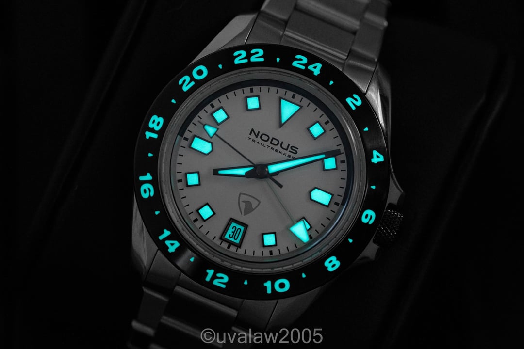 For sale is my [Nodus x Raven TrailTrekker ACT](https://www.noduswatches.com/design-lab-shop/p/trailtrekker-act) in excellent condition with light surface wear. Powered by the Miyota 9075 true/traveler GMT movement with independently adjustable hour hand. Complete kit with inner/outer boxes, manual, all bracelet links, and two-year warranty card valid through May 2027. * Miyota 9075 True GMT (regulated by Nodus) * 39.5mm case width x 11.8mm thickness x 46.6mm lug-to-lug x 20mm lug width * Box sapphire crystal, blue anti-reflective coating on the underside * Fixed 24-hour bezel with high-polish black DLC coating * Swiss Super-LumiNova BGW9 Grade A (lumed bezel and date wheel) * 200 meters WR **$650 shipped to US only. Payment via Zelle, Venmo, or PayPal F/F. No trades, please.** Album: [https://imgur.com/a/X8vOpf0](https://imgur.com/a/X8vOpf0) Timestamp: [https://imgur.com/Lorv430](https://imgur.com/Lorv430)