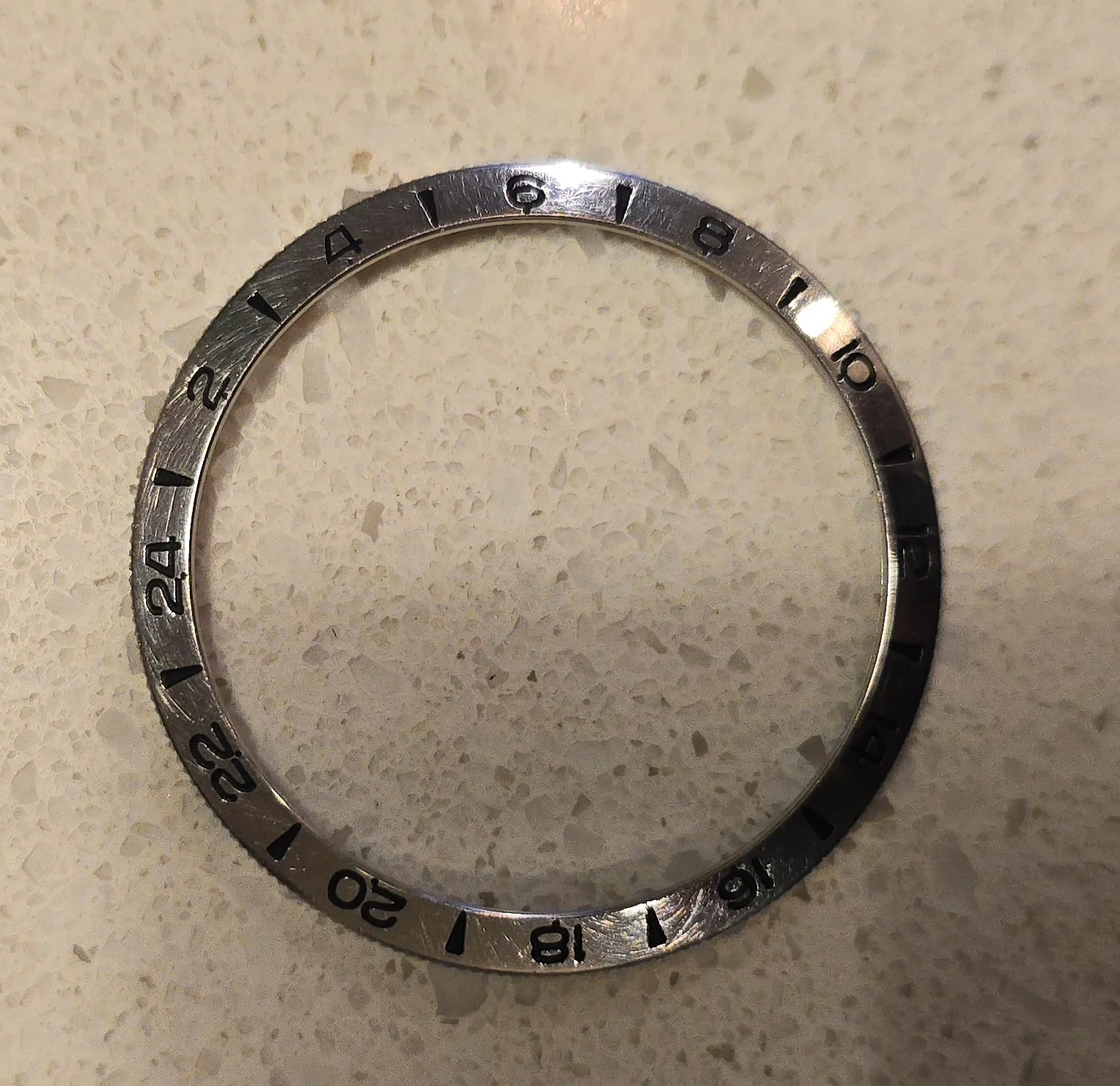 The crystal has a couple deep scratches that have been polished, as well as what is likely a crack near 12 o'clock.