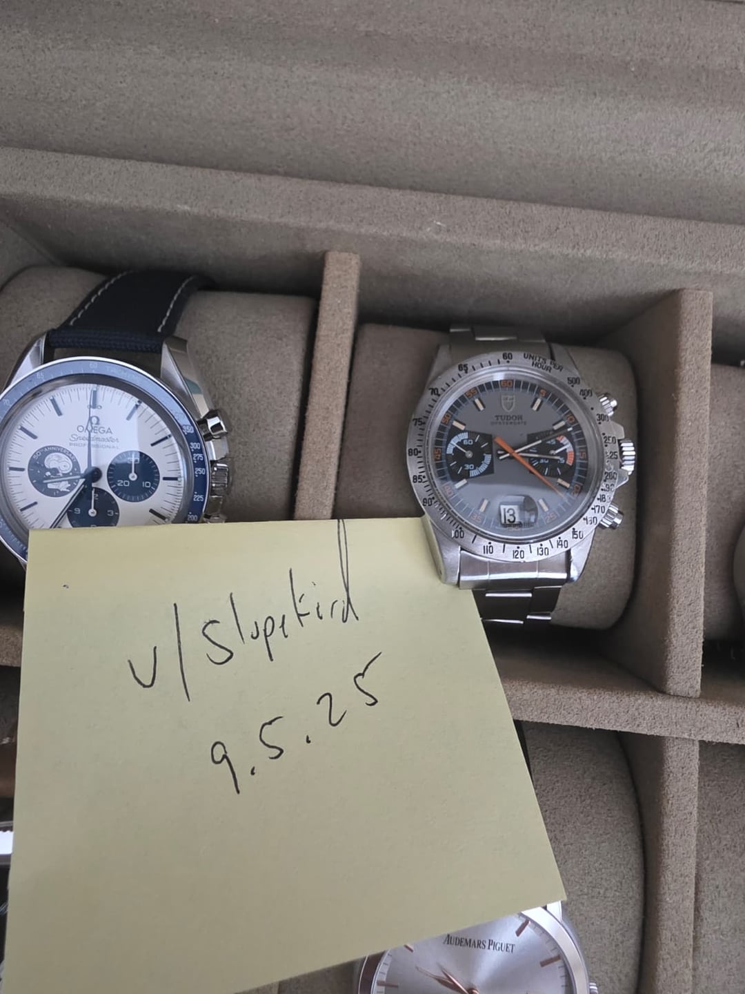 **1974 Tudor Oysterdate “Monte Carlo”** **Ref:** 7159/0 **Serial:** 826XXX The Tudor Oysterdate 7159/0, nicknamed the “Monte Carlo” by collectors, is one of the most iconic vintage chronographs produced under the Rolex umbrella. Released in the early 1970s, this reference was the second generation of the Monte Carlo line, succeeding the 7031/0 and 7032/0, and was the first to feature the robust screw-down pushers and upgraded Valjoux 234 movement — giving it improved water resistance and reliability. This particular 1974 example remains in excellent condition for its age and has just been serviced by our in-house watchmaker. The case is unpolished, preserving its crisp original lines, and all functions operate flawlessly. It retains correct period details including the Rolex-signed crown, Rolex case back, and Rolex clasp. The bracelet fits wrists up to approximately 7.5 inches. With its bold dial layout, distinctive roulette-style minute track, and unmistakable 1970s design language, the Monte Carlo has become a true grail for vintage Tudor enthusiasts. This is a rare opportunity to acquire a well-preserved, freshly serviced piece of Tudor and Rolex history. Price = $14,299 shipped Pics & Timestamp = [https://imgur.com/a/4Frnkke](https://imgur.com/a/4Frnkke) IG =watchfornia Cheers, Adam